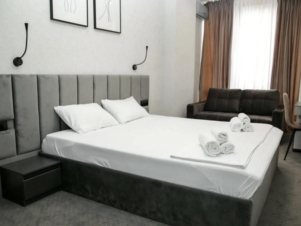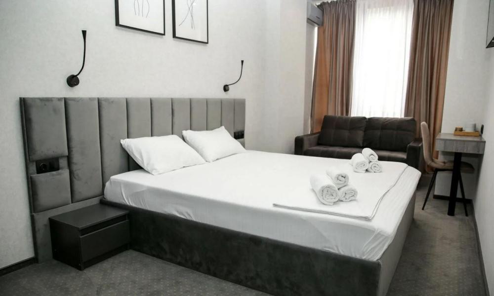 Номер оснащен всем необходимым для комфортного отдыха: двуспальная или две односпальные кровати, диван-кровать, есть место для хранения вещей, удобства, телевизор, холодильник, электрический чайник, кондиционер.