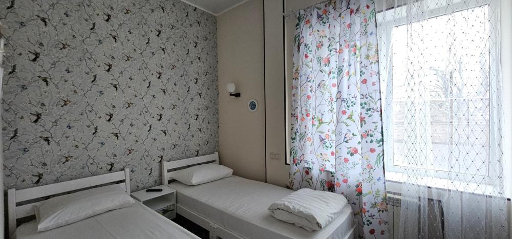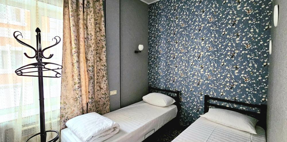 две односпальные кровати, прикроватная тумба, телевизор, интернет, кондиционер, Wi-Fi, ванная комната (душ, раковина, санузел)