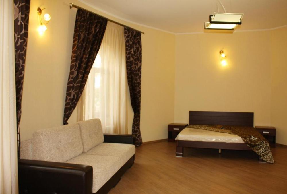 Двухместный номер с 1 двуспальной кроватью, раскладным диваном, телевизором и собственной кухней. В ванной комнате: джакузи, биде, туалетно-косметические принадлежности.