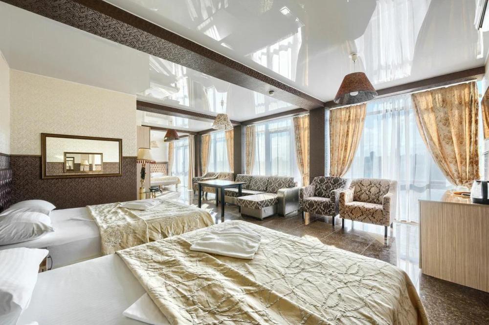 Две односпальных кровати Большой удобный диван Джакузи Вид на город Телевизор с плоским экраном Кондиционер Бесплатный Wi-Fi