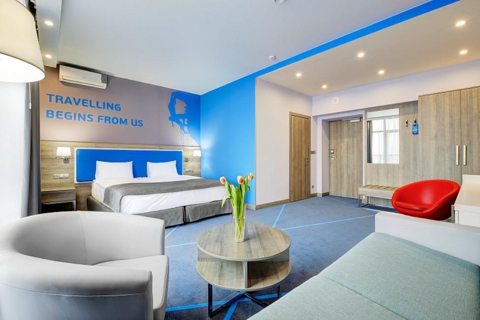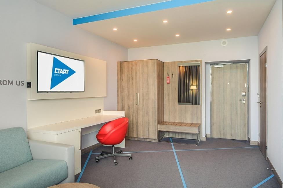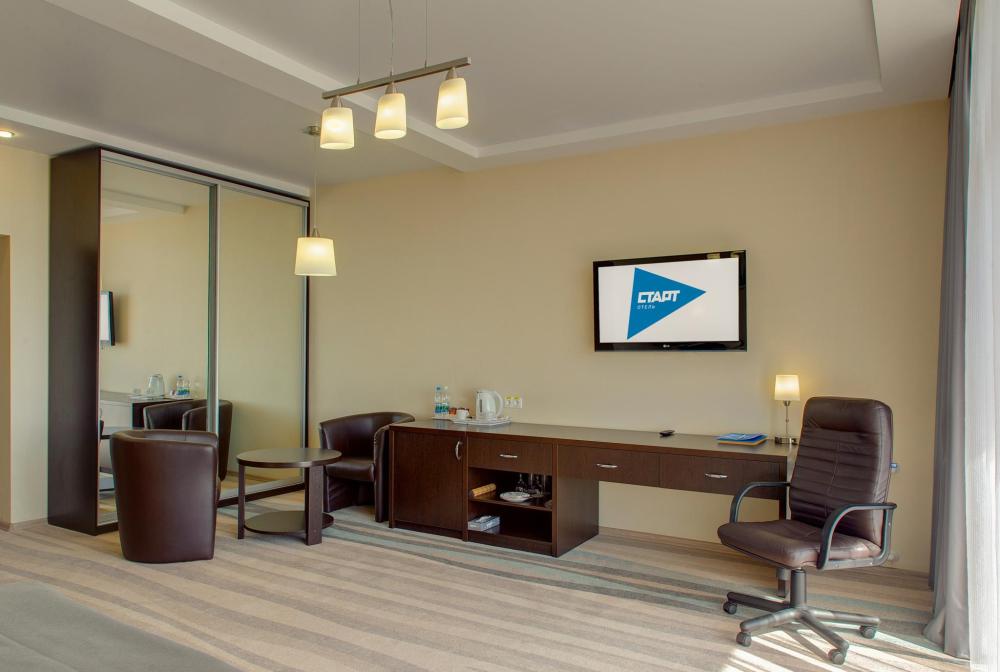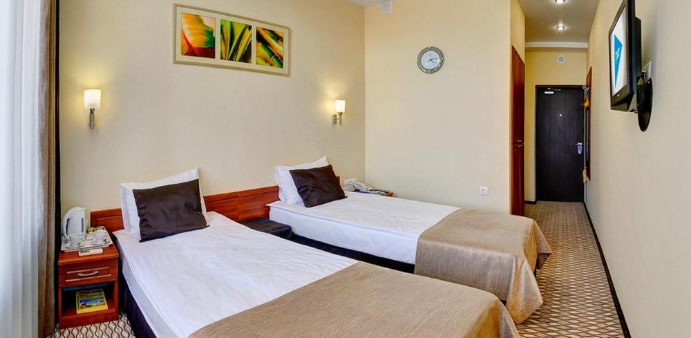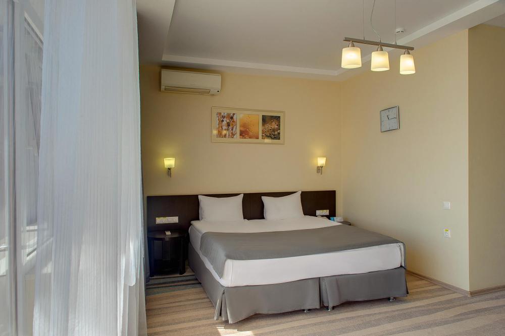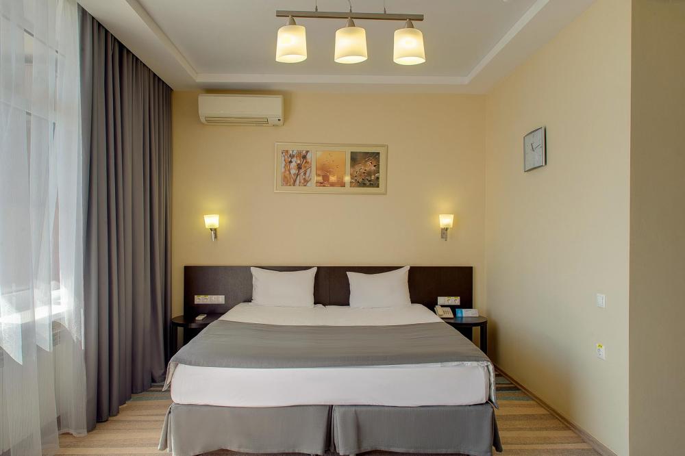 Одна комната, в номере кровать queen-size или две 80х200, платяной шкаф, две тумбочки, рабочее кресло, сплит-система, фригобар, цифровое TV, электрический чайник, фен, две чайные пары, телефон, беспроводной интернет, минеральная вода, чай, кофе, cахар.