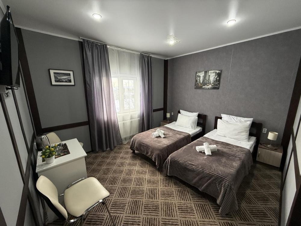 Номера имеют приятный дизайн и площадь 22 кв. метров. Гости оценят комфортабельную мебель и непередаваемую уютную атмосферу внутри номера.