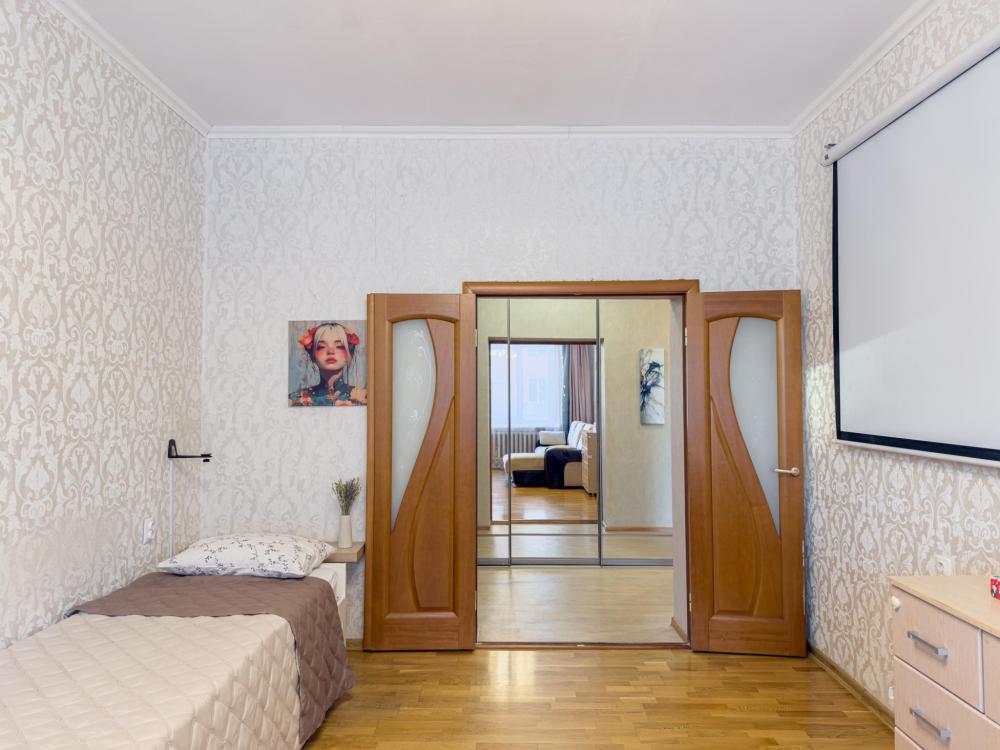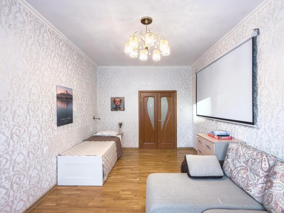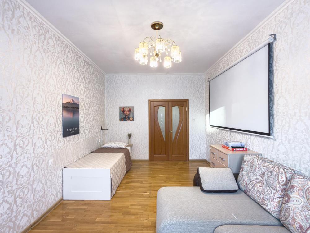 Двухкомнатная квартира, очень просторная (67 кв.м.), на 6 человек, и даже можно взять дополнительно маленького ребенка без места, чтобы спал вместе с родителями на большой кровати.