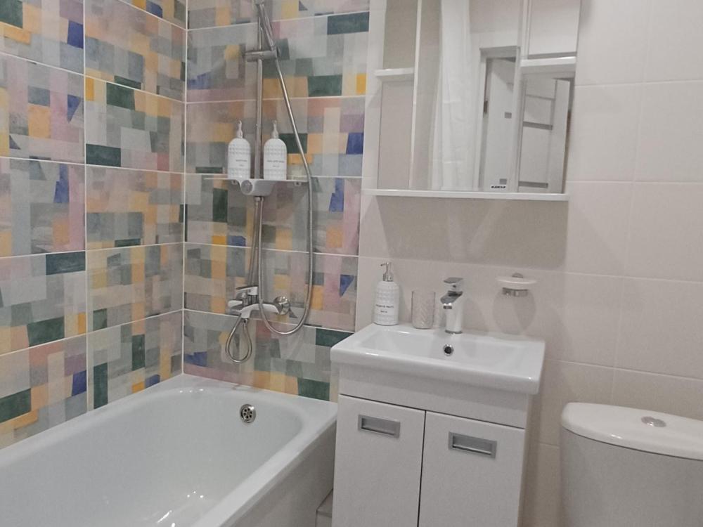 В апартаментах возможно размещение 4 человек. Спальные места: двуспальная кровать, диван кровать. Кухня оборудована необходимой посудой и техникой: холодильник, чайник, электрическая плита, микроволновая печь. К услугам гостей также wi-fi, телевизор, стиральная машина, фен, утюг, сушилка для одежды, постельное белье, полотенца, средства гигиены.
