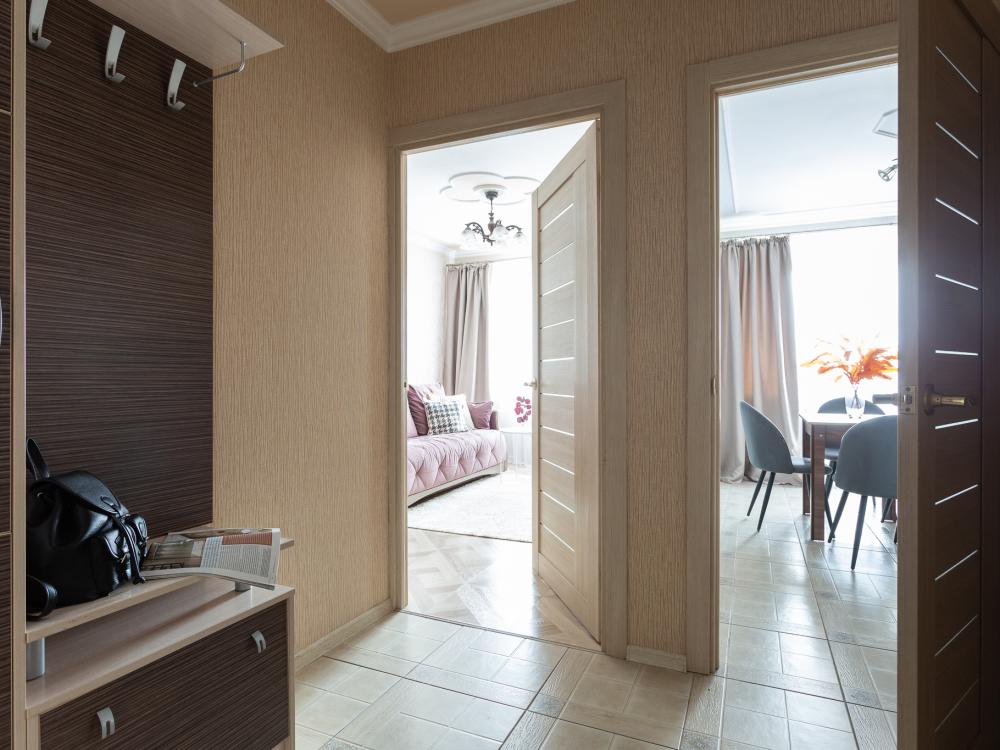 Квартира оснащена всем необходимым: 1 комфортабельной кроватьями 160х200. Заправлены чистым бельем из прачечной. 2 Раскладывающимся двухместными диванами. Каждому гостю по 2 полотенца: для душа, для рук и лица. В квартире набор столовых приборов и посуды на 6 персон. Площадь 2-комнатной квартиры 54,8 кв. м. Находится на 12/16 этаже. В квартире могут расположиться максимум 6 гостей. Окна балкона выходят как во двор так и на улицу. ЧТО РЯДОМ? В шаговой доступности находится самое необходимое - продуктовый супермаркет ""Макси"", Metro Cash & Carry, ТЦ ""Рио"", бассейн, бар ""Dober Lounge"", поликлиника, детская поликлиника, аптека, стоматология, АЗС, Вологодский промышленно-технологический техникум, остановки общественного транспорта."