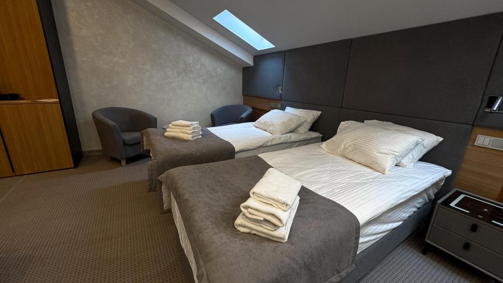 В каждом номере: удобная кровать с качественным матрасом, отдельный санузел с душем, Wi-Fi и рабочее место, ТВ, фен, текстиль и всё необходимое для отдыха
