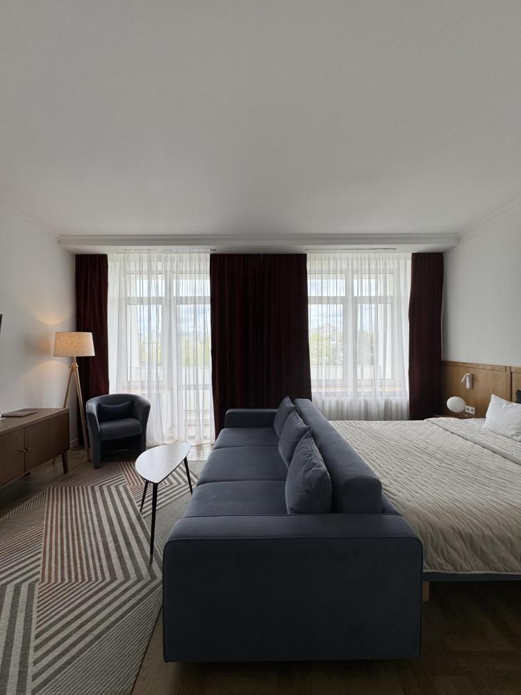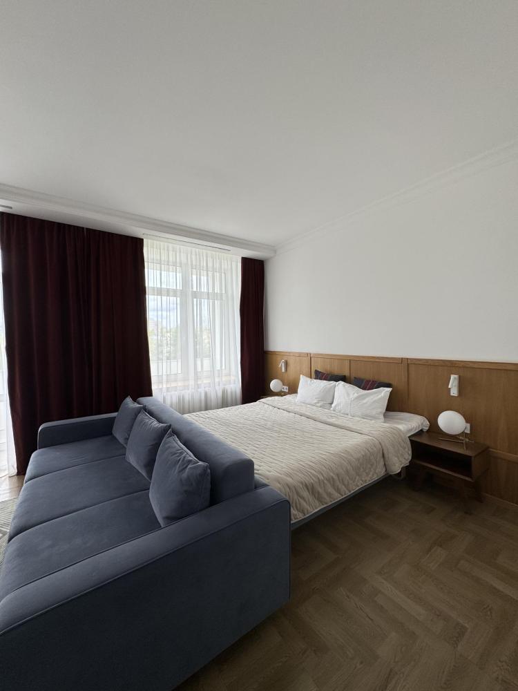 Отель "Николаевский" предлагает 11 таких номеров площадью 24 кв. м. с двуспальной кроватью. В номере две комнаты: спальня и гостиная также раздельная туалетная и ванная комната с душевой кабинкой, предоставляется халат и тапочки. Оборудование номеров составляет: LED телевизор с кабельным ТВ, телефон, система климат-контроля, рабочий стол, Wi-Fi, холодильник, фен.