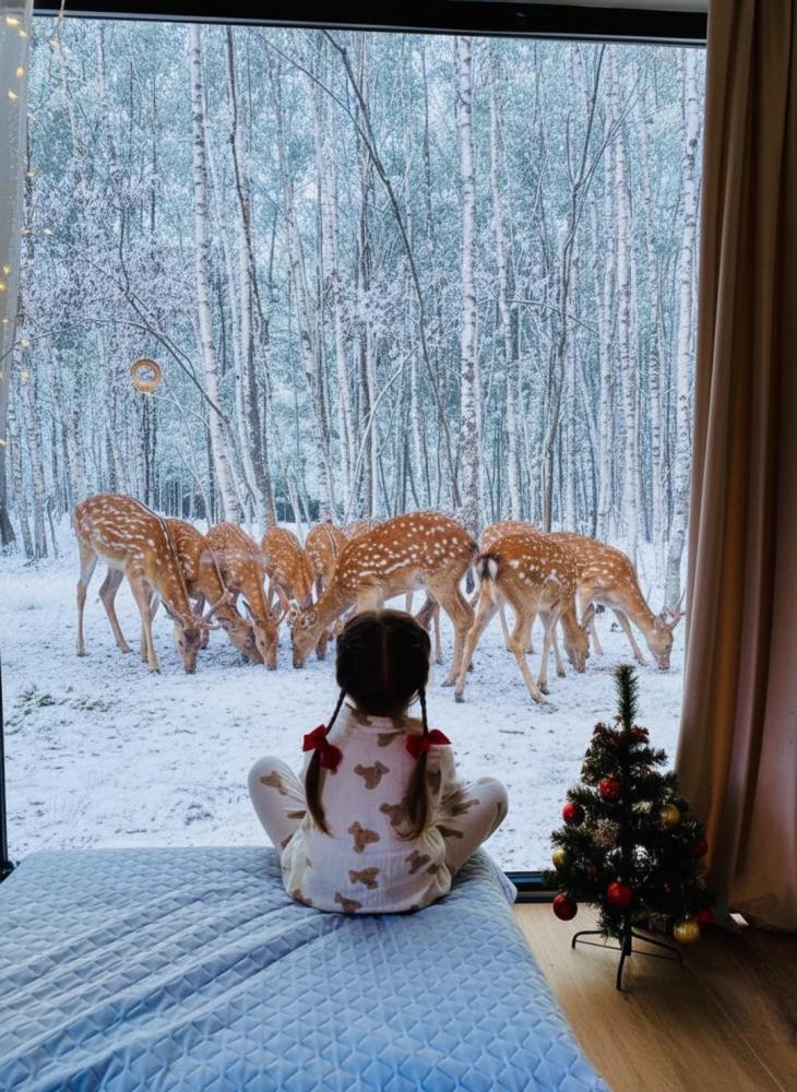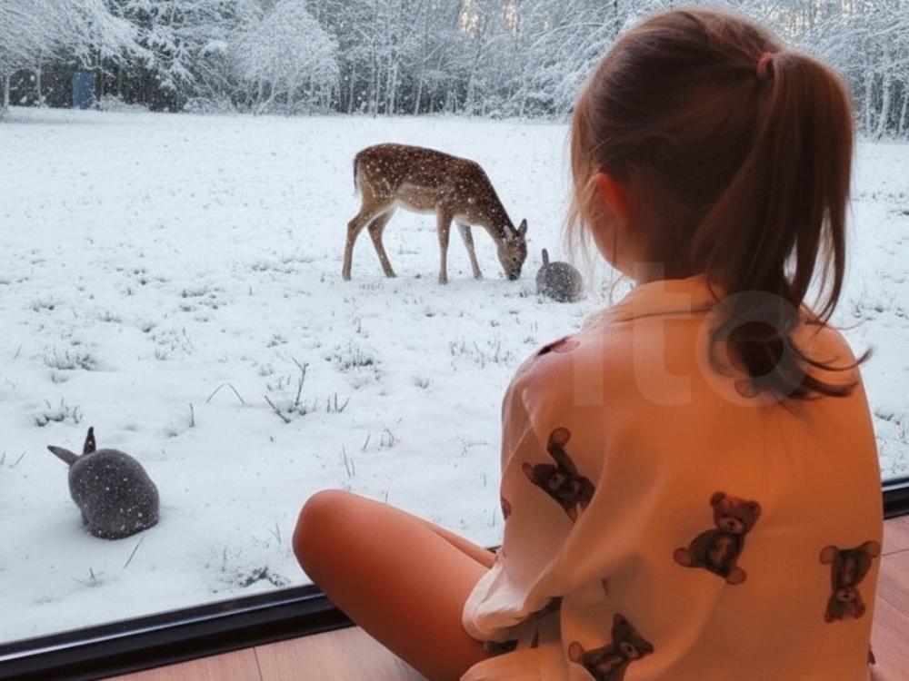 Современные домики в собственном лесу с пятнистыми оленями. Пятнистые олени гуляют прямо перед панорамными окнами, их можно покормить прямо с веранды. В домах есть все для качественного отдыха на природе:большая двуспальная кровать 180/200, просторная кухня-столовая, гостиная с диваном, санузел, теплый пол, открытая терраса с панорамным видом на лес, с которой можно кормить оленей и кроликов. В доме реализована финская концепция панорамного остекления - из любой части дома через окно виден лес. Собственный банный чан у домика (дополнительная услуга). Перед домом костровая чаша и мангальная зона.