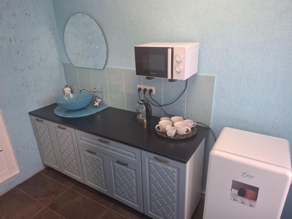 В комнате 1 односпальная кровать.Удобства общие,на 3 номера. Без окон. На три номера одна большая гостевая комната оборудована холодильником, микроволновкой, чайником , набором посуды , стиральной машинкой , внутренняя терраса.