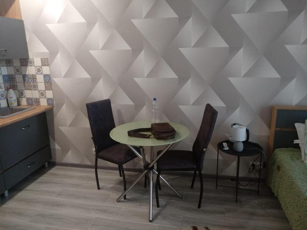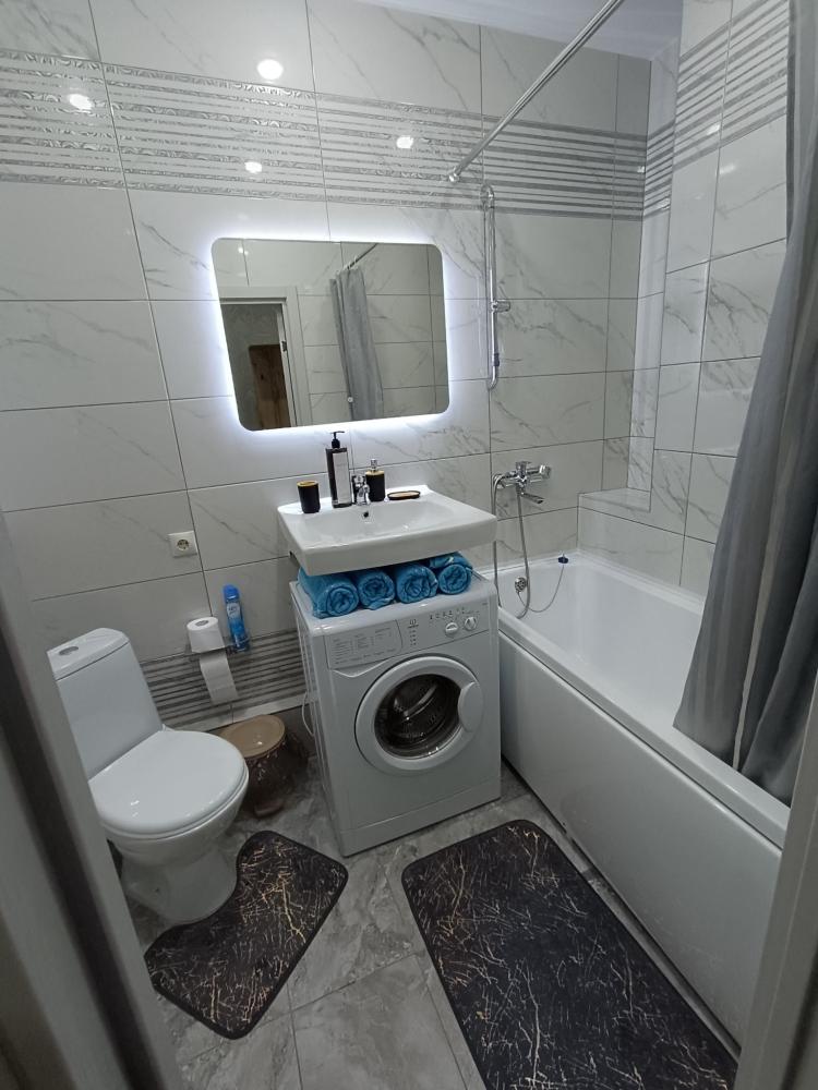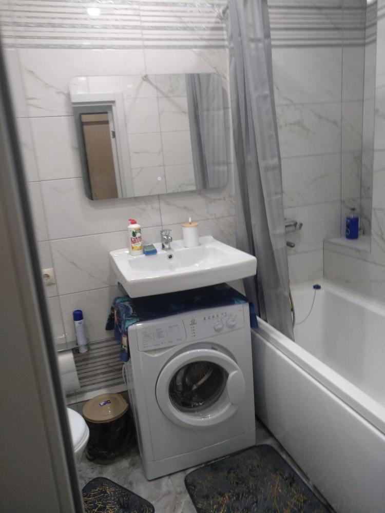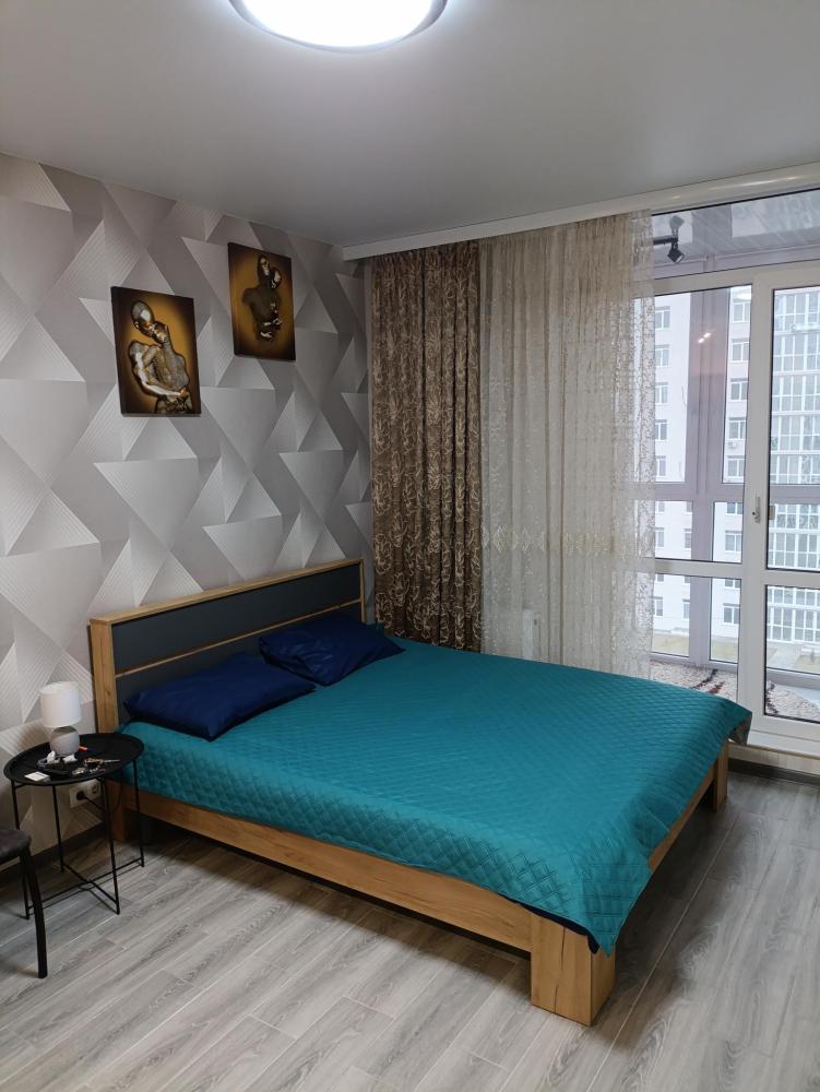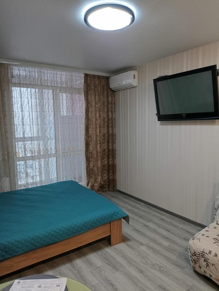Студия с качественным ремонтом, на 6 этаже 17-ти этажного дома. Дом расположен в жилом комплексе "Атмосфера". В доме есть грузовой и пассажирский лифт, консьерж, система видеонаблюдения по этажно . С одной и с другой стороны дома- детские площадки , по периметру дома газон. В шаговой доступности аквапарк ,продуктовые магазины, кафе, мойка машин , парковочные места для автотранспорта и другое. Территория огорожена по всему периметру забором. Вьезд в жилой комплекс через шлагбаум. О квартире: студия 27м кв. мебелирована всем необходимым для комфортного проживания. В ванной комнате (туалет) установлены новая ванна, стиральная машинка, умывальник. В коридоре стоит шкаф. В комнате зона кухни и зона отдыха. Кухонный гарнитур новый , электроплита, чайник, посуда, микроволновая печь, и др. В комнате большая двухспальная кровать( новая) , столик стеклянный , стулья, диванчик (раскладной), телевизор , сплит-система , холодильник , шкаф-пенал(новый). Лоджия большая ( 4,4 кв.м.) с прекрасным видом во двор с панорамными окнами. Скоростной интернет.