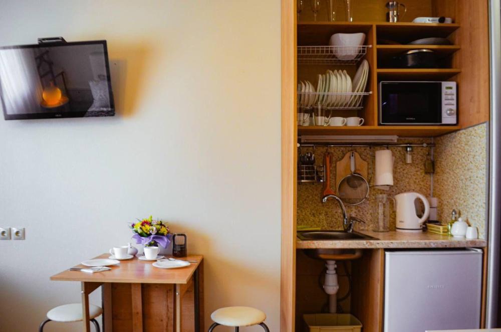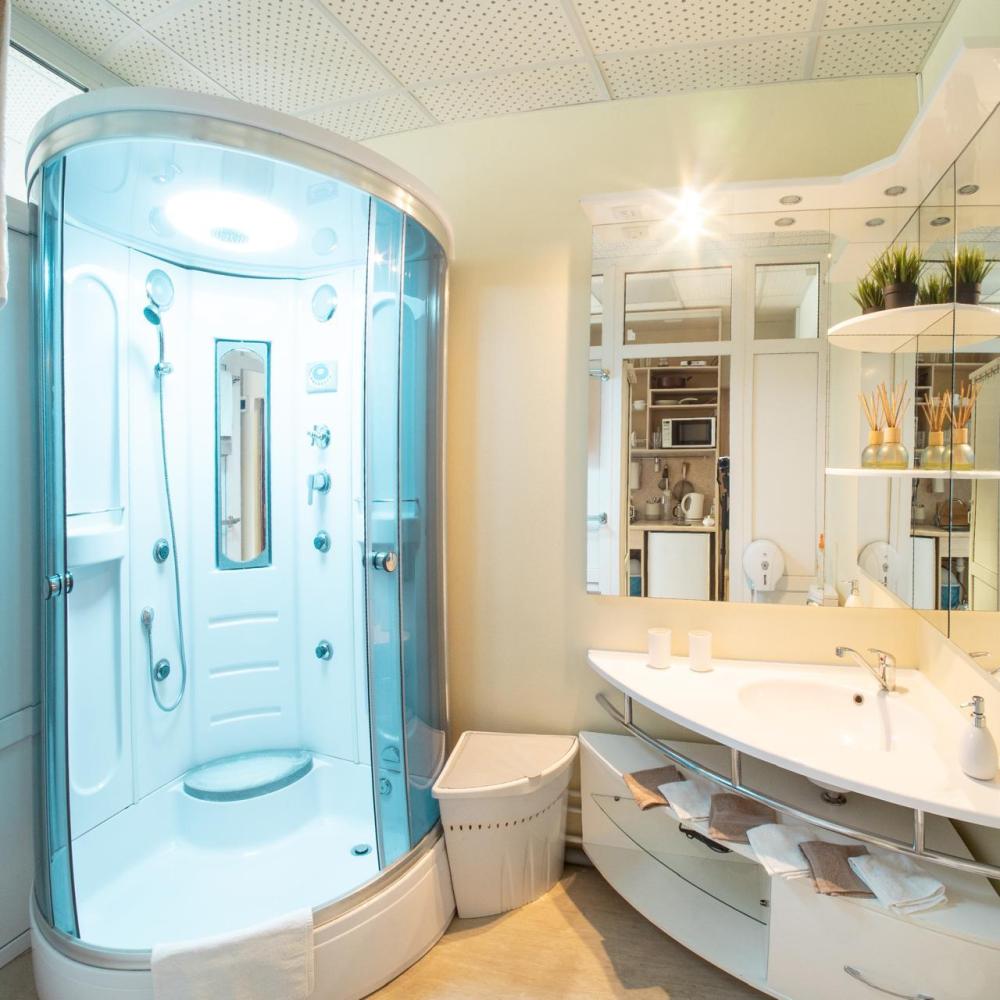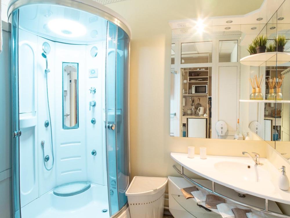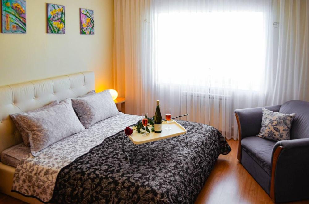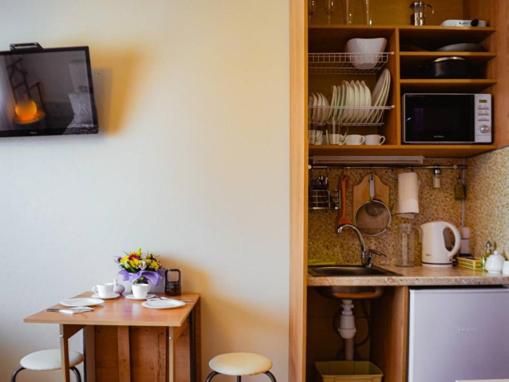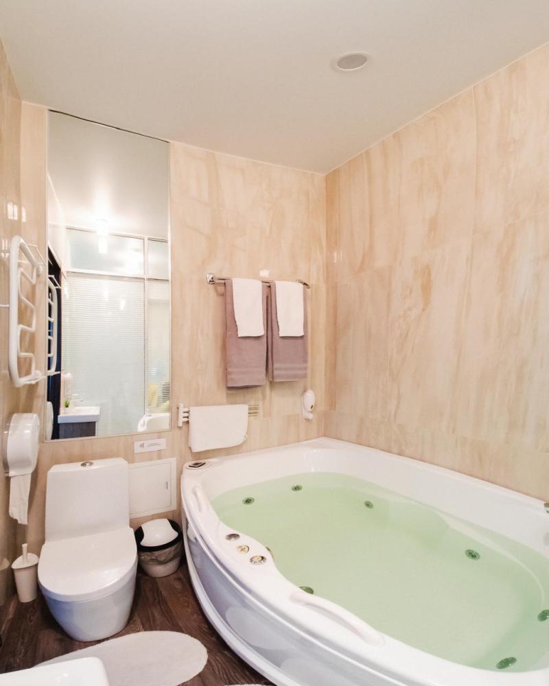Двуспальная кровать. Кондиционер, телевизор, беспроводной интернет. Оборудованная зона кухни: холодильник, микроволновка, чайник, посуда. Собственная ванная комната с душем, или ванна с джакузи. Также имеется стиральная, и сушильная, машина, фен, утюг. Предоставляется постельное белье и полотенца.