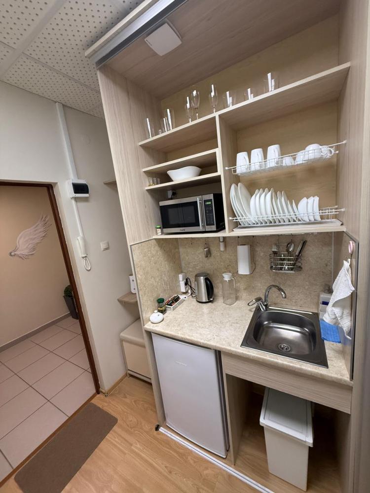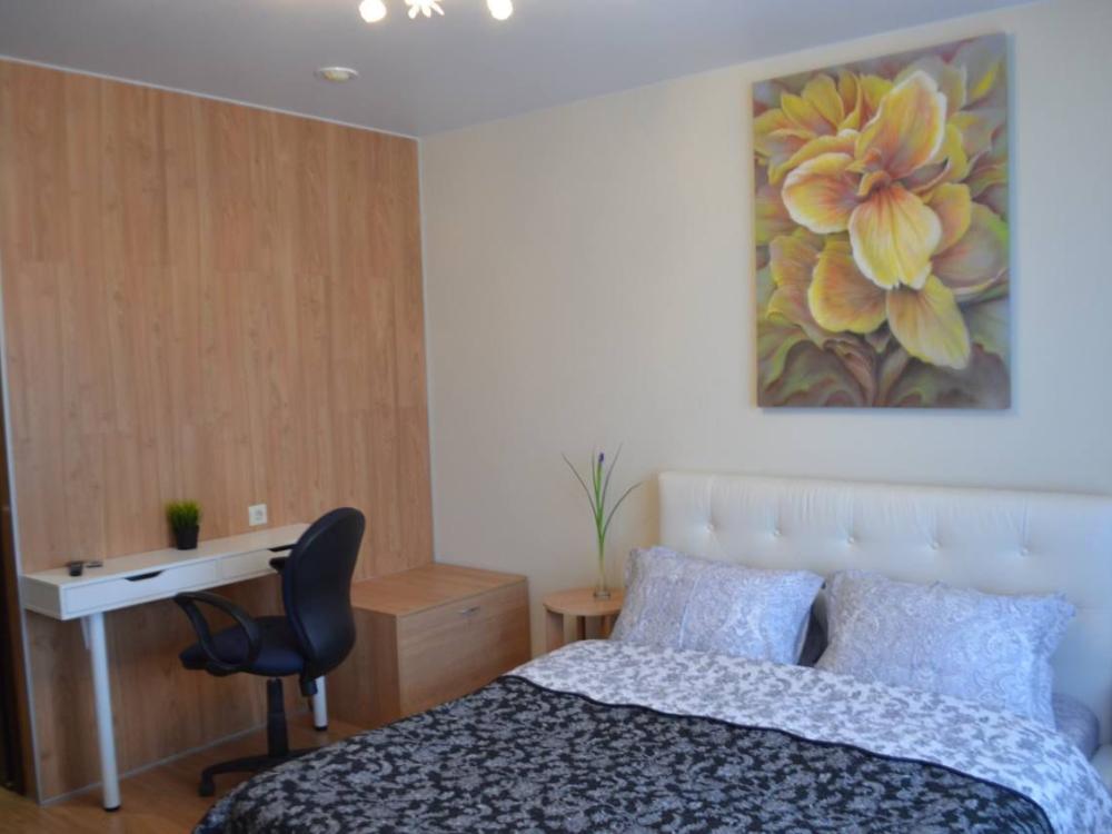 Двуспальная кровать, раскладной диван. Кондиционер, телевизор, беспроводной интернет. Оборудованная зона кухни: холодильник, микроволновка, чайник, посуда. Собственная ванная комната. Также имеется стиральная, и сушильная, машина, фен, утюг. Предоставляется постельное белье и полотенца.