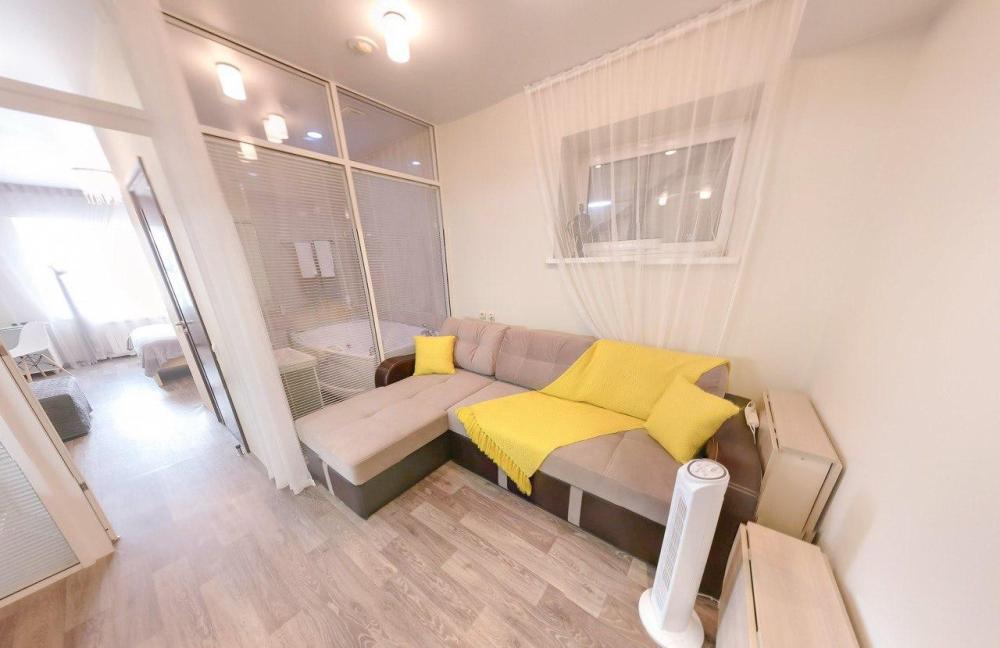 Двуспальная кровать, раскладной диван. Кондиционер, телевизор, беспроводной интернет. Оборудованная зона кухни: холодильник, микроволновка, чайник, посуда. Собственная ванная комната с джакузи. Также имеется стиральная, и сушильная, машина, фен, утюг. Предоставляется постельное белье и полотенца.