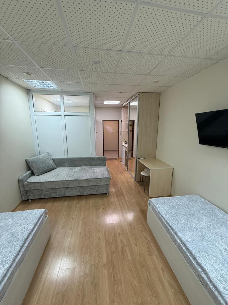Двуспальная кровать и две односпальные. Кондиционер, телевизор, беспроводной интернет. Оборудованная зона кухни: холодильник, микроволновка, чайник, посуда. Собственная ванная комната с душем. Также имеется стиральная, и сушильная, машина, фен, утюг. Предоставляется постельное белье и полотенца.