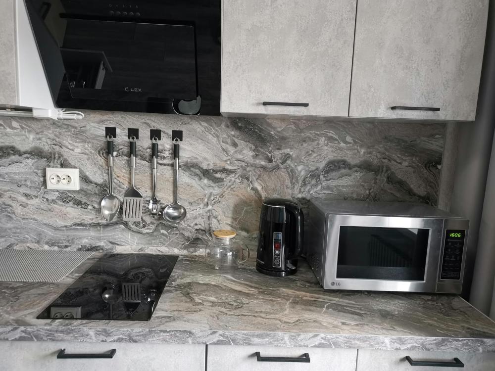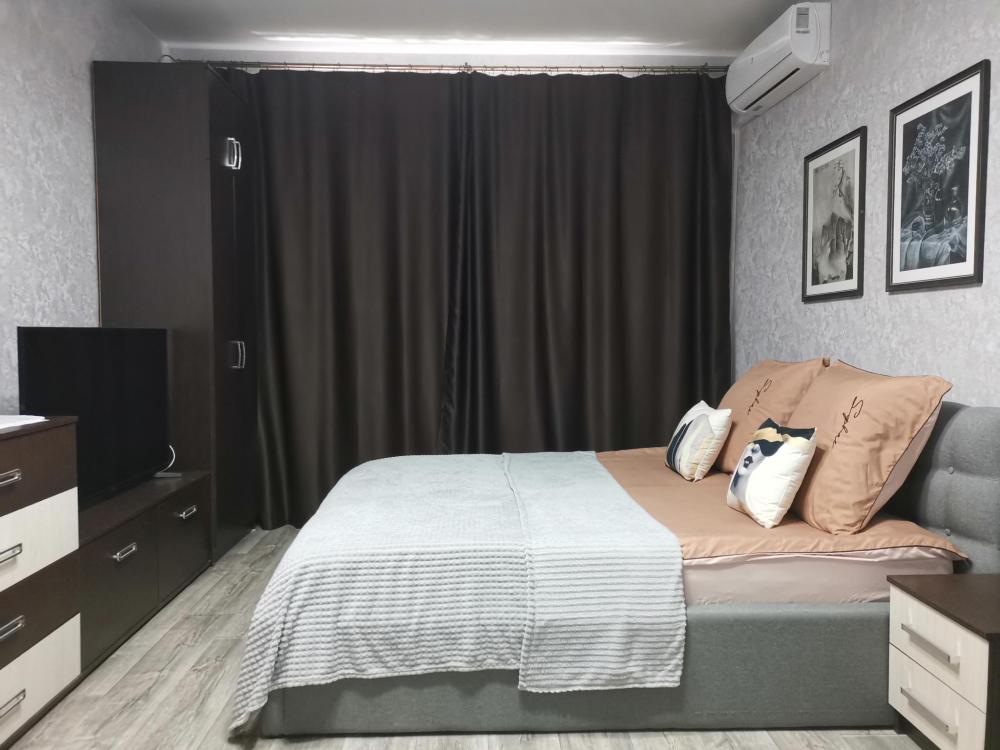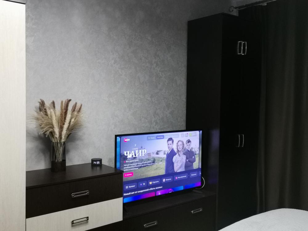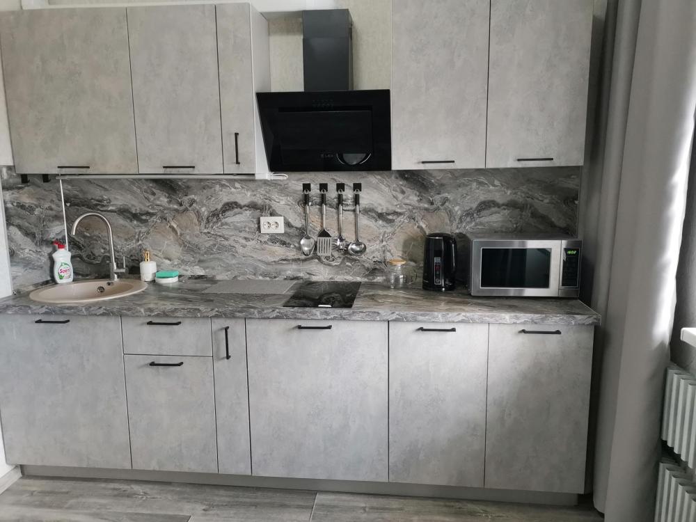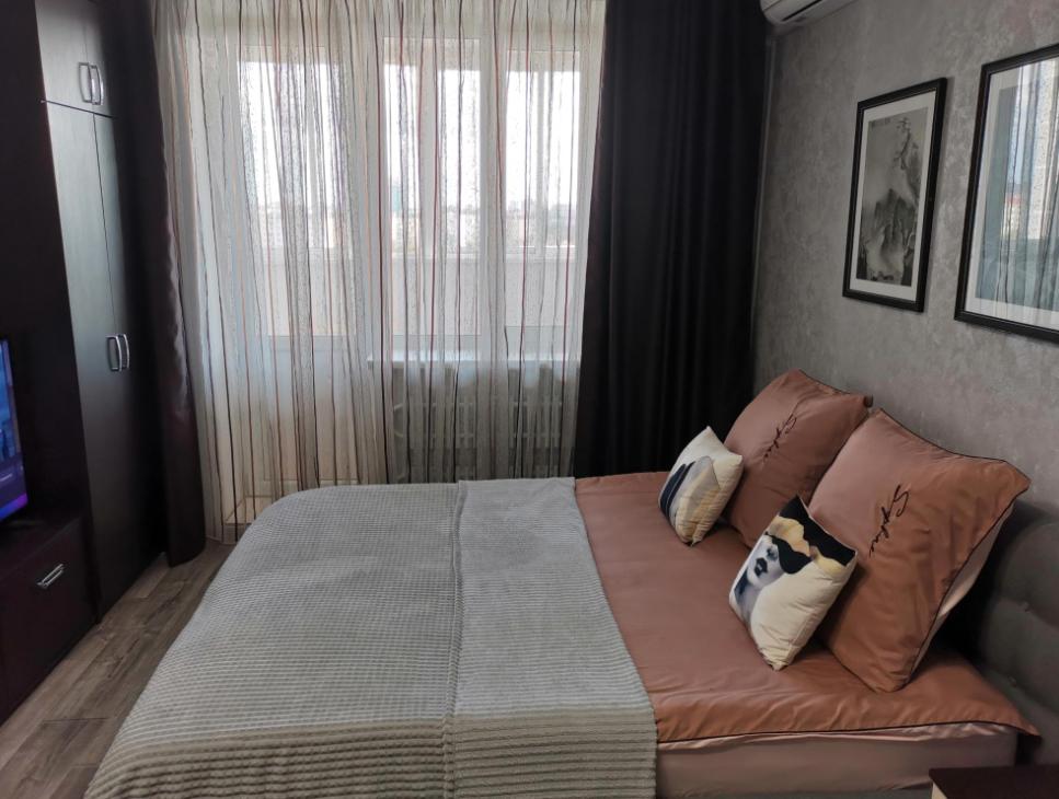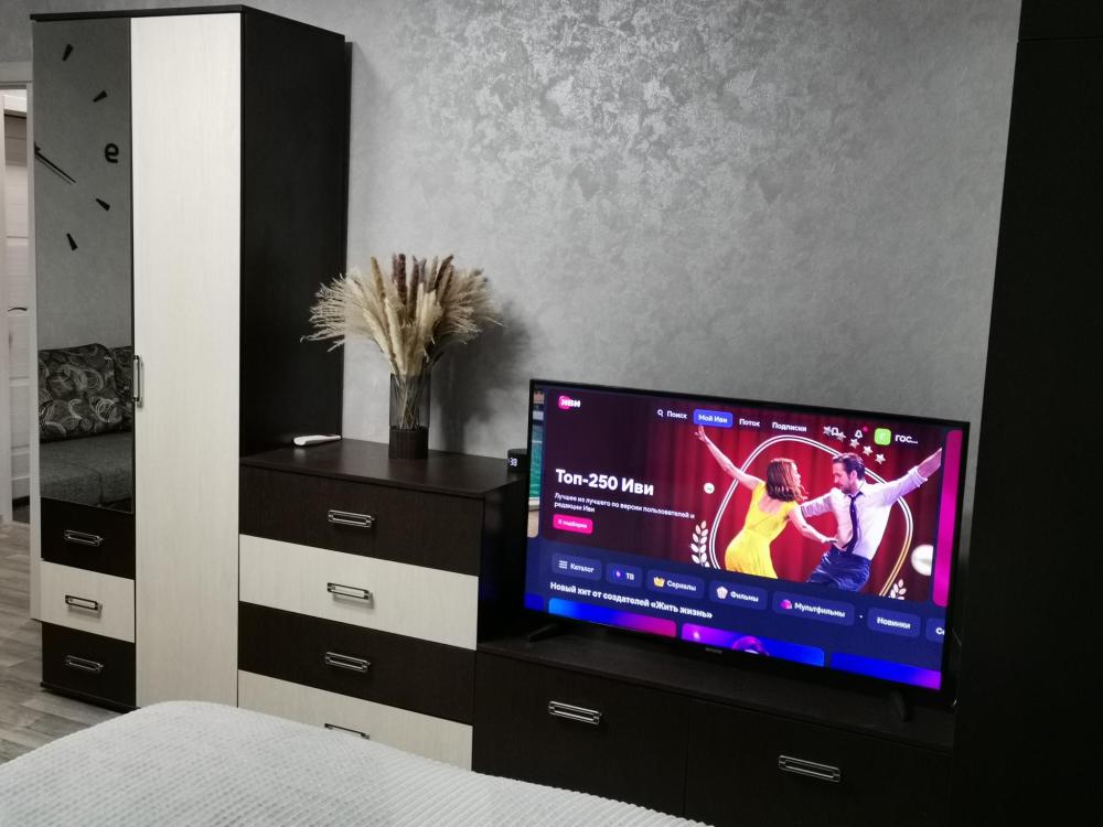 В квартире Вас ждет большая комната, оборудованная всем необходимым для проживания 4-х человек, интересный интерьер с необычной спокойной цветовой гаммой, большой smart-телевизор с оплаченной подпиской и приятные элементы декора. А значит Вам одинаково комфортно будет отдохнуть после долгой дороги, провести романтический вечер, подготовится к деловой встрече, или навестить родных и близких Вам людей.