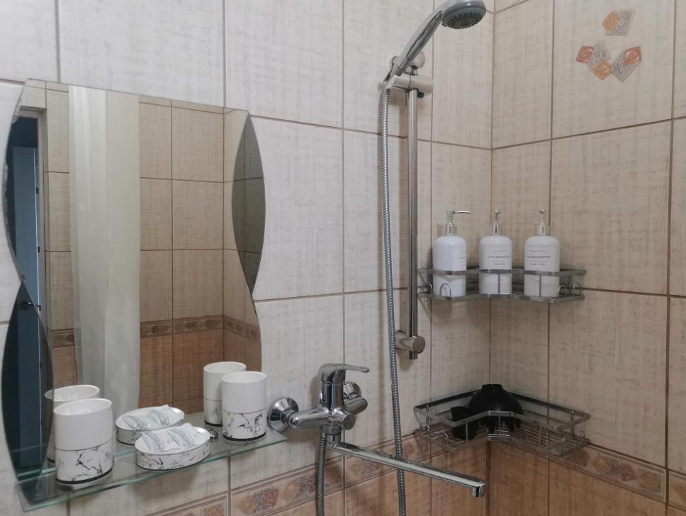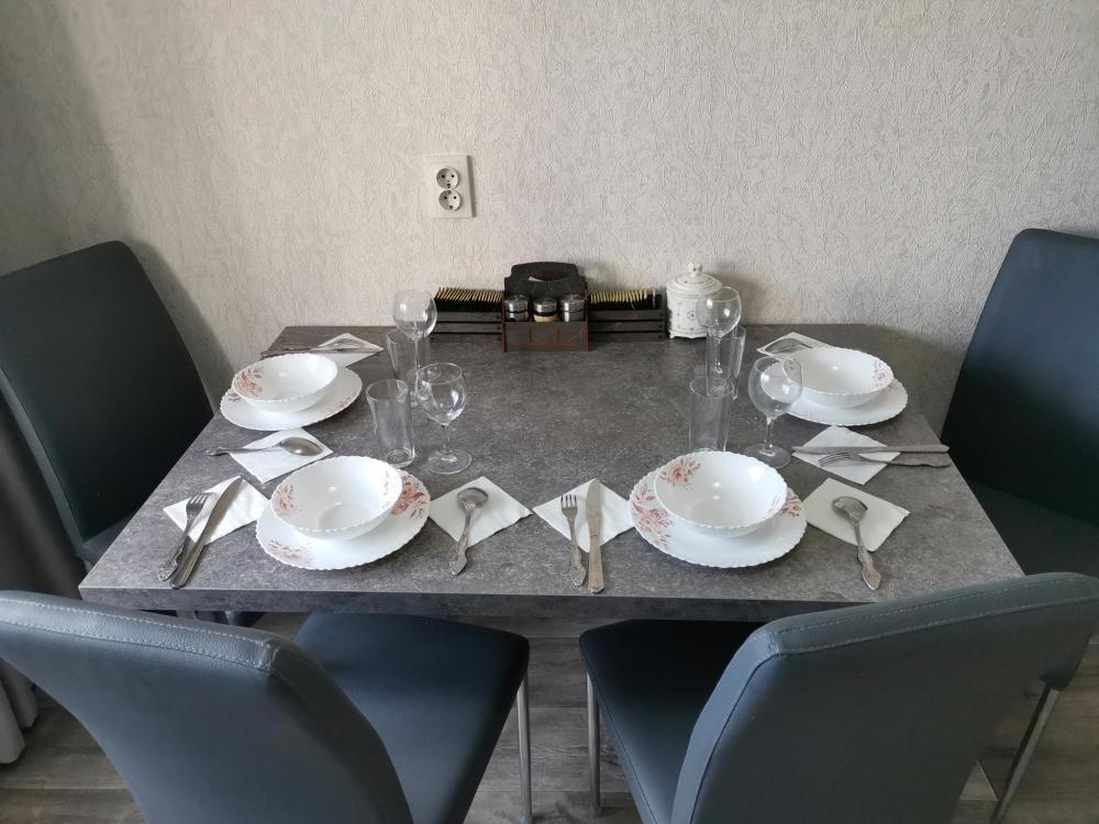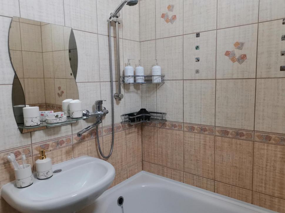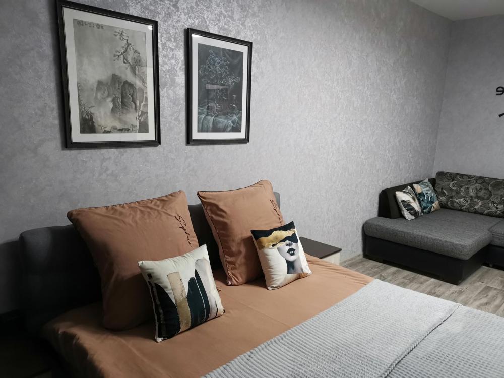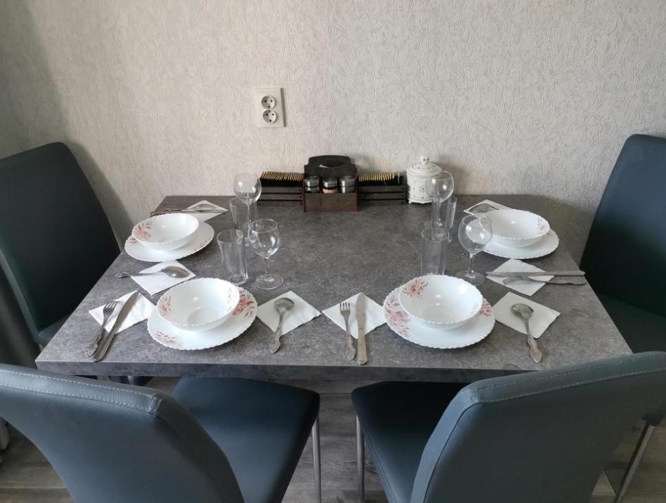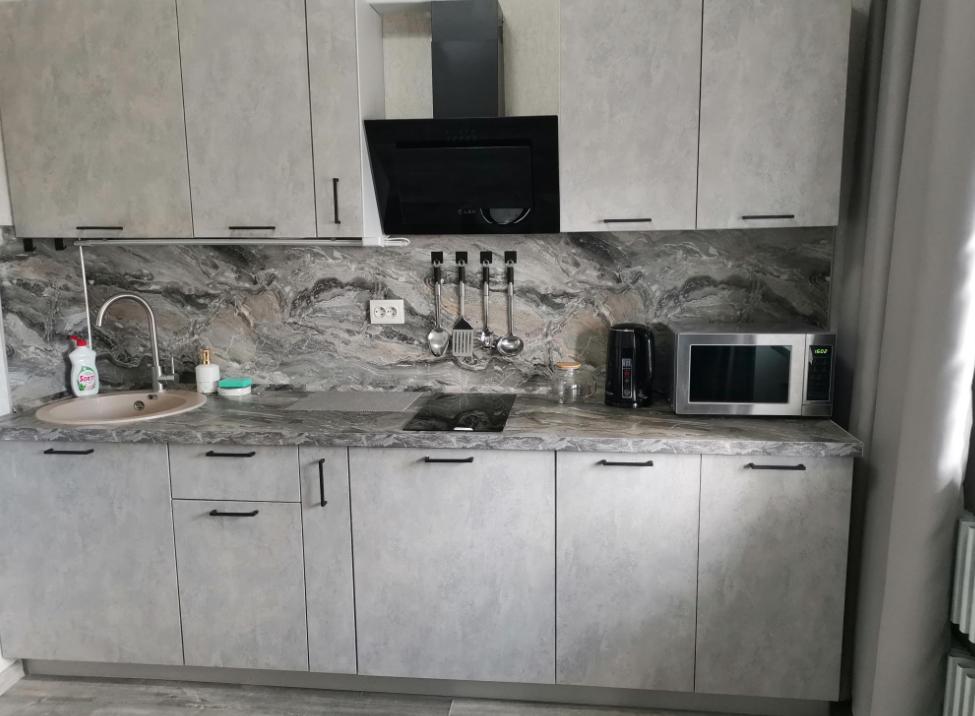 В квартире Вас ждет большая комната, оборудованная всем необходимым для проживания 4-х человек, интересный интерьер с необычной спокойной цветовой гаммой, большой smart-телевизор с оплаченной подпиской и приятные элементы декора. А значит Вам одинаково комфортно будет отдохнуть после долгой дороги, провести романтический вечер, подготовится к деловой встрече, или навестить родных и близких Вам людей.