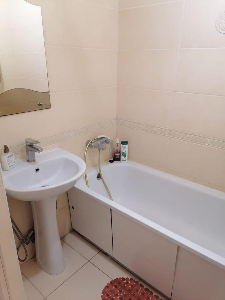 Просторная двухкомнатная квартира площадью 57 кв. м с современным интерьером. В ней есть уютная гостиная с мягким диваном и телевизором, комфортабельная спальня с двуспальной кроватью. Полностью оборудованная кухня с плитой, микроволновкой, холодильником и посудой — готовьте любимые блюда. Ванная комната с душем, санузлом и стиральной машиной. Бесплатный Wi-Fi, чистота и уют гарантированы. Квартира рассчитана на 4 гостей, идеально подходит для семьи или небольшой компании.