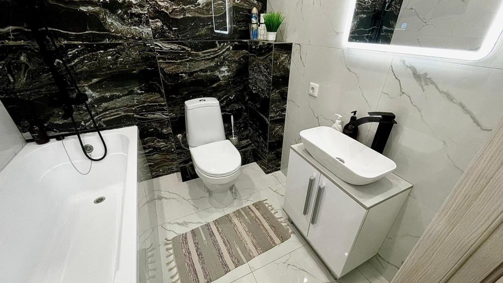 В квартире есть все для Вашего комфорта 2х спальная кровать 2х спальный диван удобная кухня посуда, бокалы, столовые приборы, тарелки, соль, сахар, чай, кофе постельное белье из хлопка, махровые полотенца, гель для душа, шампунь, жидкое мыло