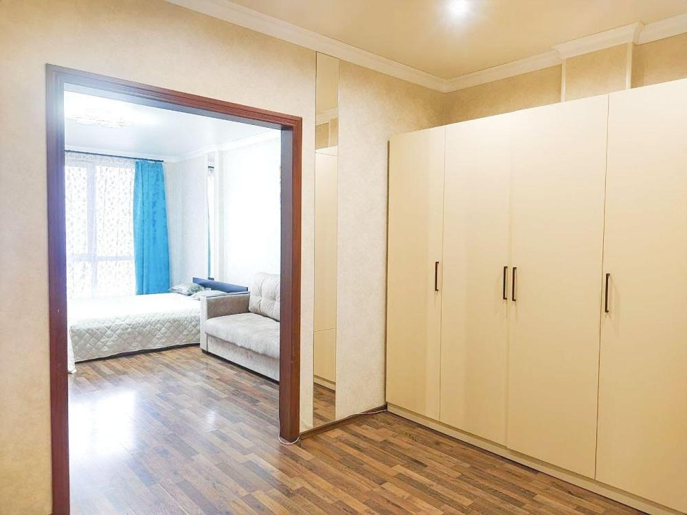 В квартире имеются витражные окна и теплый балкон с видом. Оснащены двумя двуспальными диванами размерами 160x200 см и 140x200 см с топперами, а также двуспальной кроватью 160x200 см с комфортным матрасом и антиаллергенными подушками. Кухня полностью оборудована: холодильник, духовка, микроволновая печь, чайник, набор посуды и столовых принадлежностей на 6 гостей. В комнатах есть многорежимное освещение, телевизор с цифровыми каналами и высокоскоростной интернет. Просторная ванная комната укомплектована стиральной машиной, бойлером, феном, утюгом, сушилкой и гладильной доской. В прихожей находятся полки, плечики, ложечка для обуви и тумба для ручной клади. В квартире сделан пол из ламината и установлена сплит-система. Круглогодично обеспечивает горячую воду водонагреватель, а также в наличии шампунь, гель для душа и жидкое мыло.
