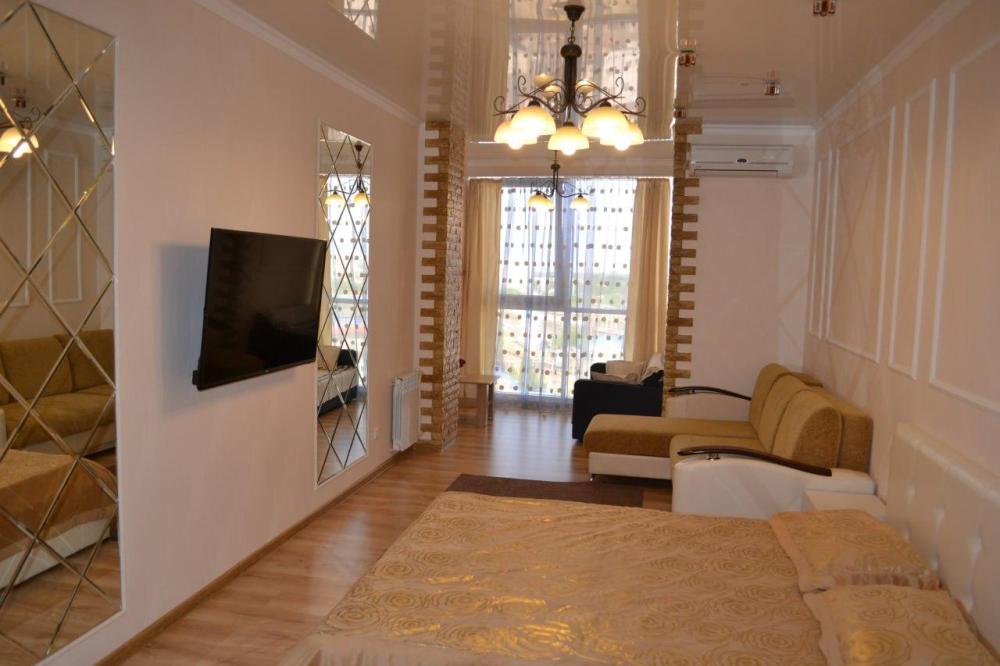 Уютные апартаменты, оборудованные всем необходимым для комфортного проживания. Спальные места: двуспальная кровать, раскладной двуспальный диван. В апартаментах имеется: Wi-Fi, кондиционер, балкон с высокими стульями и столом-подоконник, постельное белье, утюг, гладильная доска, стиральная машина, сушилка для белья, набор посуды и столовых приборов.