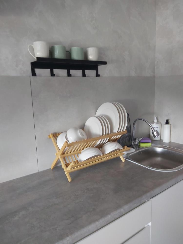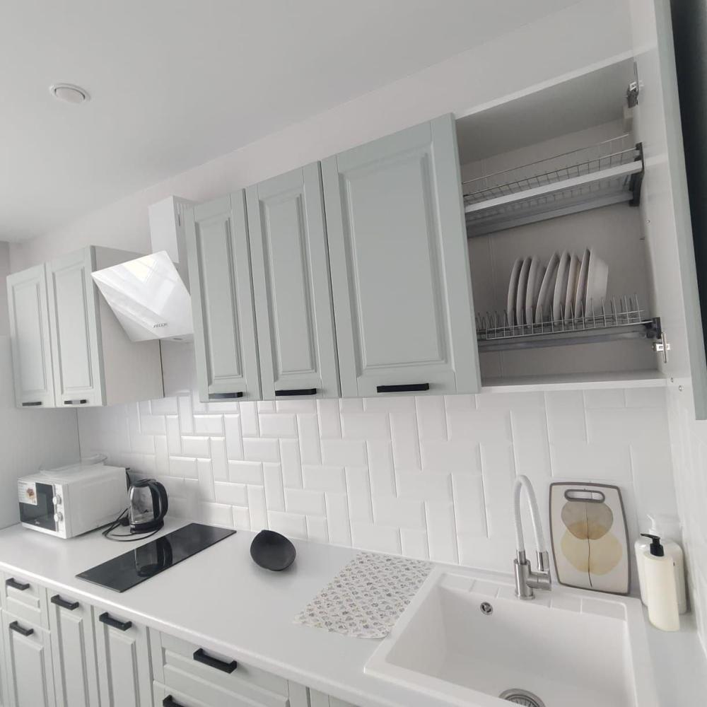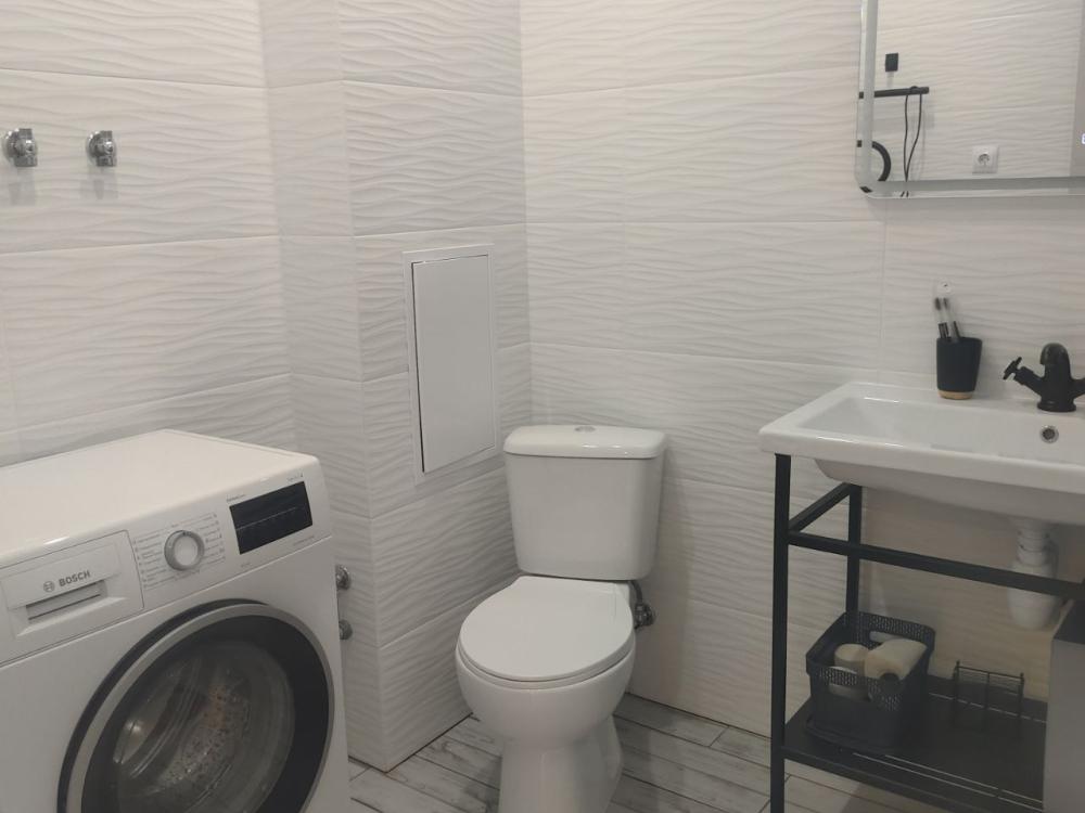 Квартира оборудована двуспальной кроватью и раскладным креслом. Предоставляется свежее постельное белье и комплект полотенец для каждого гостя. В кухне есть все необходимое: кухонные принадлежности, чайник, холодильник, микроволновая печь, электрическая плита и посуда для приготовления и сервировки. Санузел объединен с душевой кабиной. В наличии стиральная машина, сушилка, гладильная доска и утюг. В квартире есть скоростной Wi-Fi, телевизор и кондиционер для комфортного отдыха.