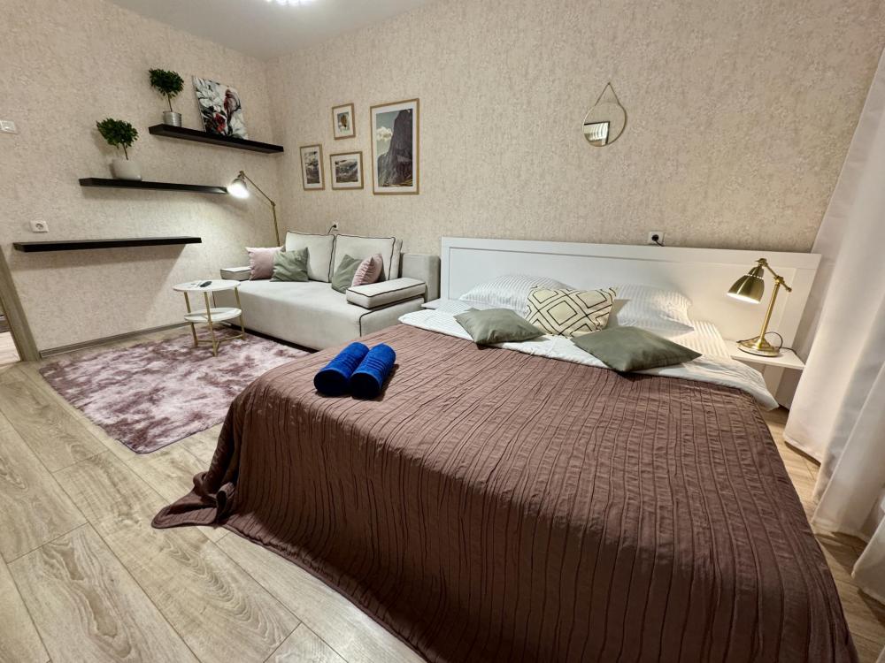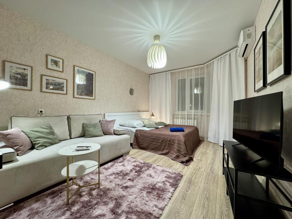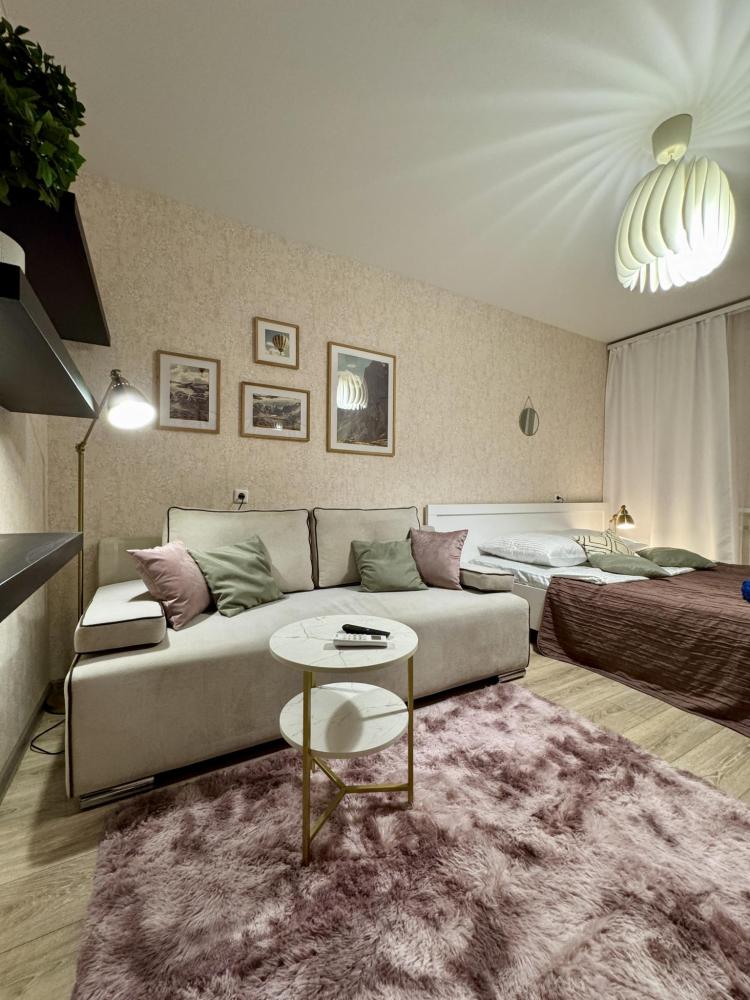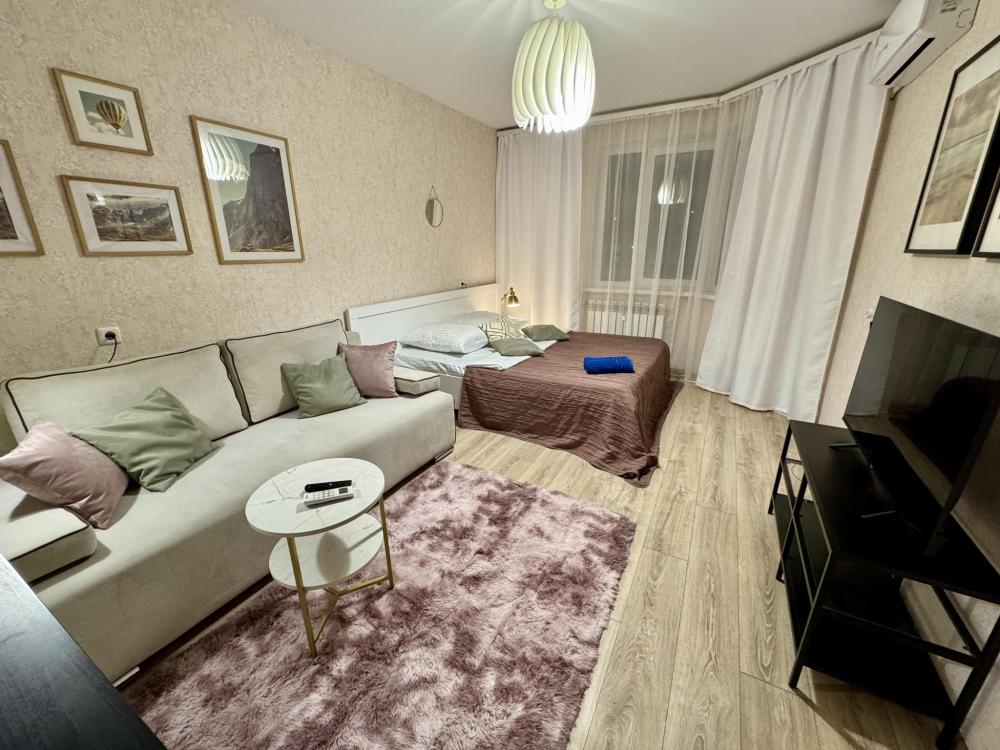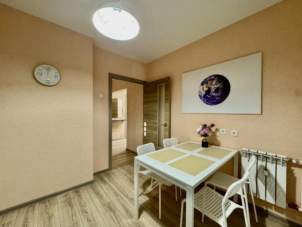 Уютная квартира в Воронеже В квартире 3 спальных места : двуспальная кровать – ширина 160 см (заправлена чистым постельным бельем белого цвета), односпальный раскладывающийся диван – ширина 140 см в разложенном виде (постельное белье прилагается).Что есть в квартире: банные полотенца по 2шт. на каждое спальное место, утюг и гладильная доска, набор посуды и столовых приборов на каждую персону, телевизор, интернет Wi-Fi Дом расположен в северном районе Воронежа, на въезде из Москвы. Транспортная остановка: «Московский проспект». Воронежский продуктовый рынок 3 мин. пешком. ТРЦ Московский проспект через дорогу 5 мин. пешком, в котором есть кинотеатр, McDonalds, гипермаркет Лента, а также множество магазинов одежды для детей и взрослых. Парк победы 10 мин. на общественном транспорте. ТРЦ Сити-Парк Град, Эвент-Холл, Воронежский Океанариум в 15 минутах на общественном транспорте.