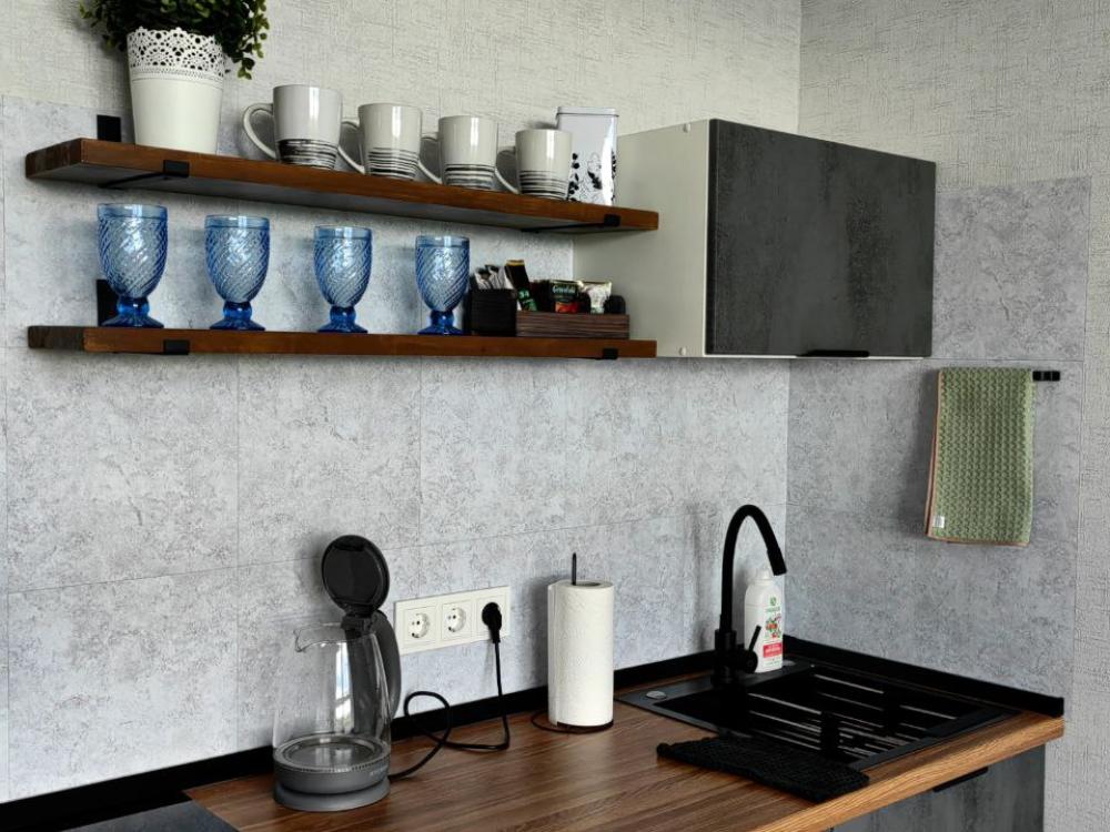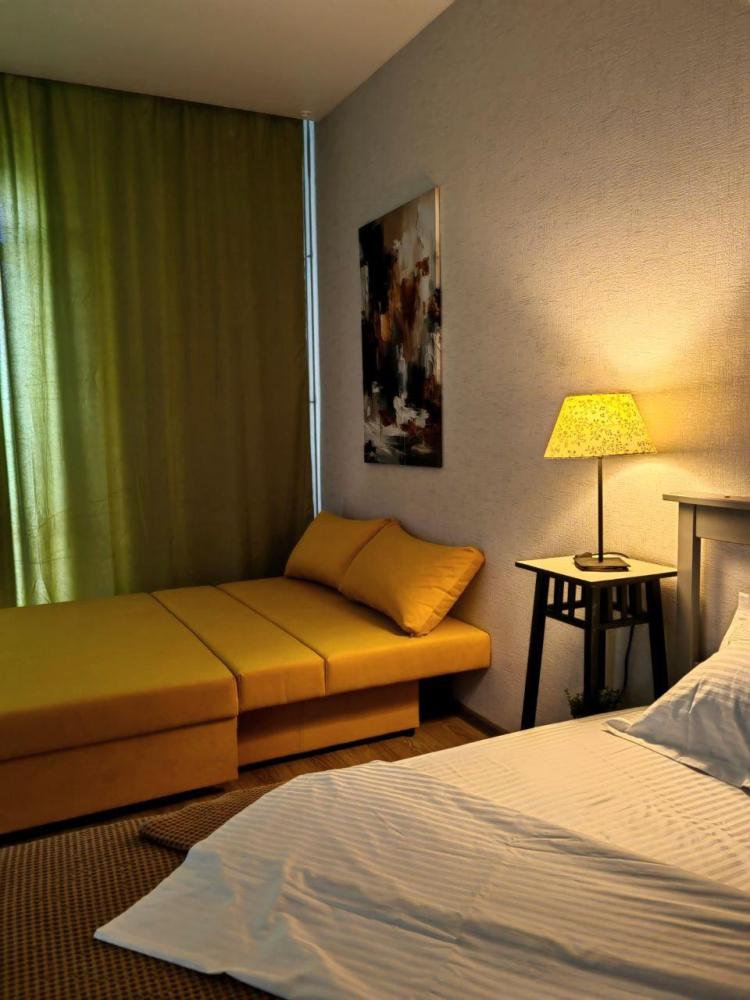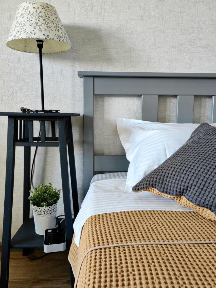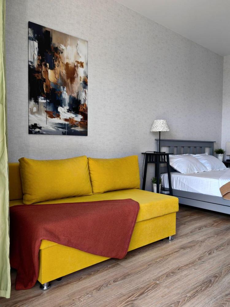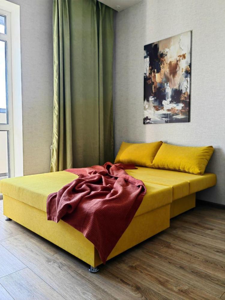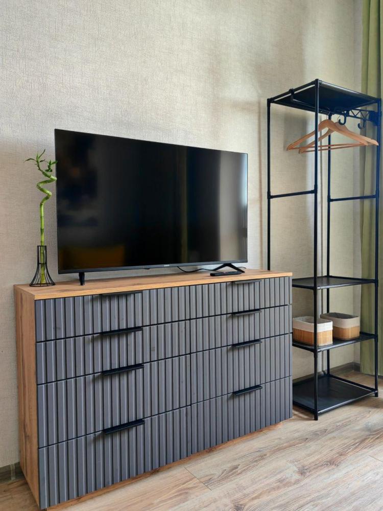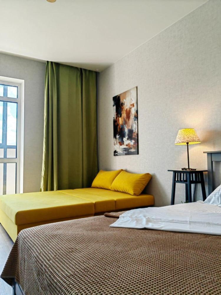 В квартире имеется одна широкая двуспальная кровать и раскладной двуспальный диван кровать. Для вашего комфорта установлен широкоформатный smart-телевизор с множеством каналов и сервисами, в которые вы сможете зайти под вашей учетной записью. Балкон с видом на лес. На кухне есть все необходимое для приготовления пиши и уютных завтраков. Ванна оснащена качественной сантехникой и тропическим душем. Имеется стиральная машина, фен, утюг. Всегда чистое постельное белье и полотенца премиум качества.