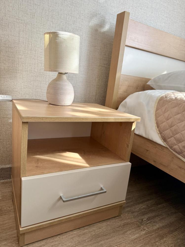 В номере: двуспальная кровать, холодильник, микроволновая печь, фен, чайник, душ/туалет, туалетно-косметические принадлежности