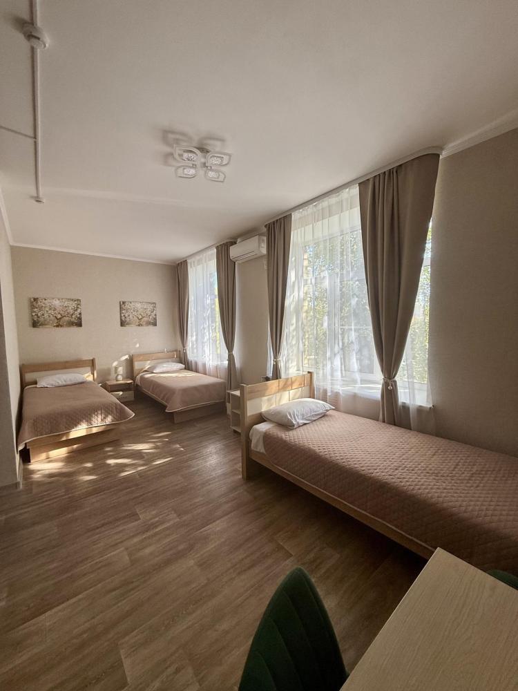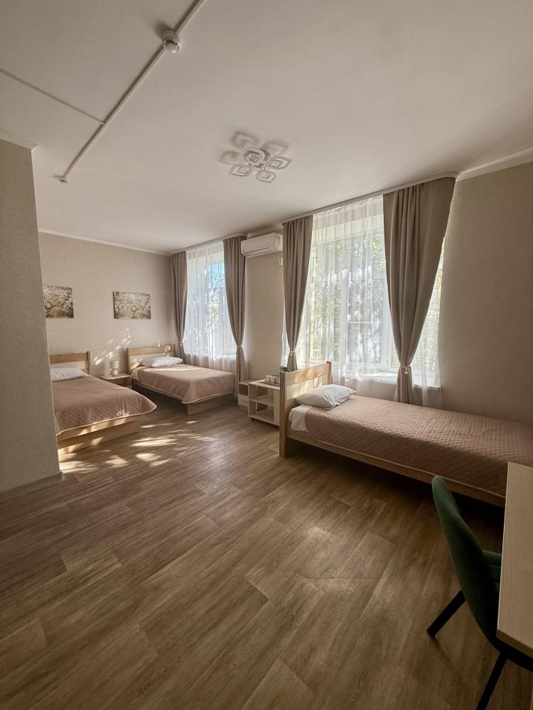 В номере: двуспальная кровать, 2 односпальные кровати, холодильник, микроволновая печь, фен, чайник, душ/туалет, туалетно-косметические принадлежности.