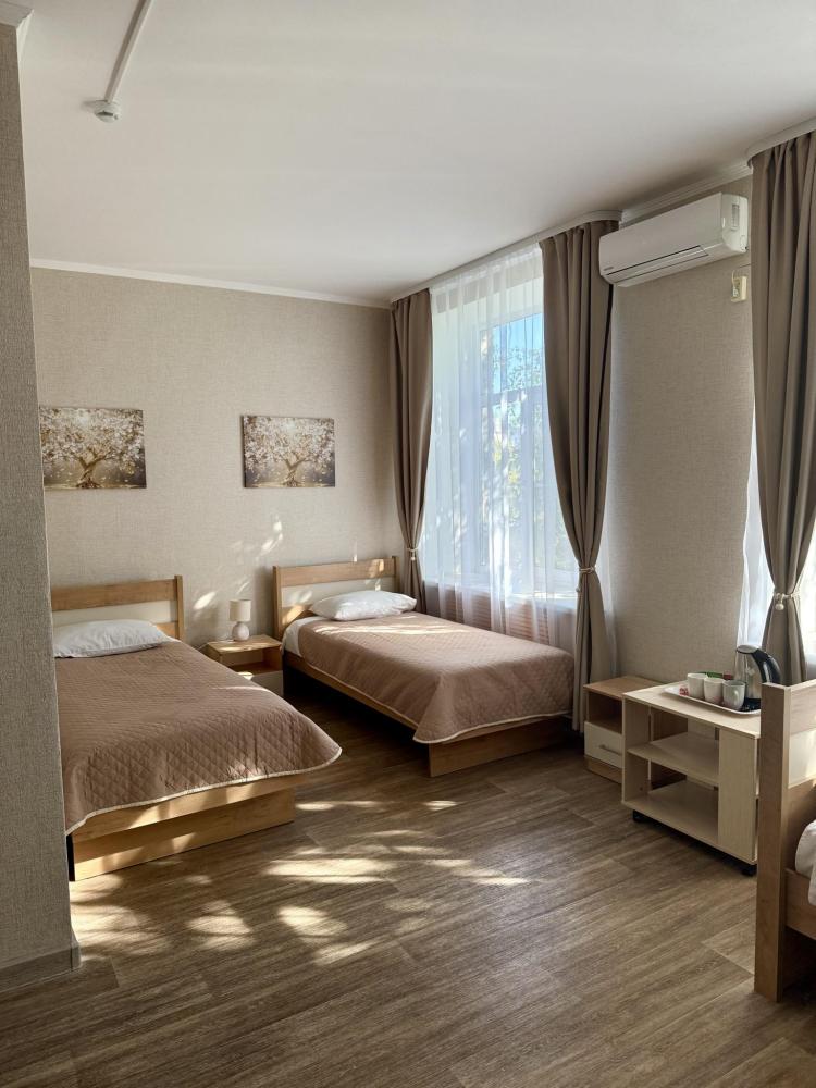 В номере: з односпальных кровати, холодильник, микроволновая печь, фен, чайник, душ/туалет, туалетно-косметические принадлежности.