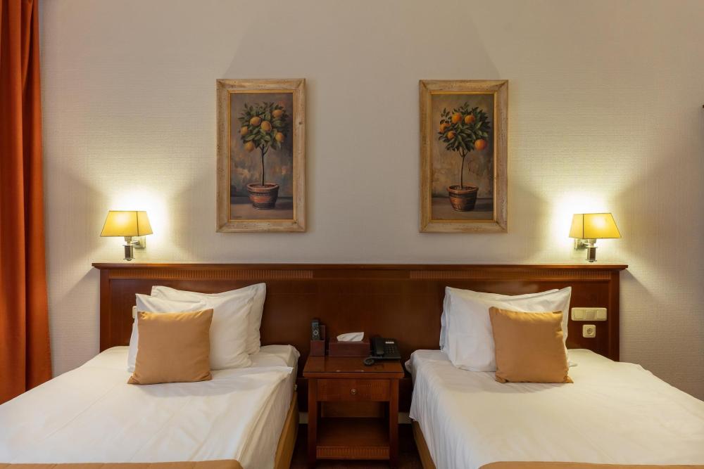 В «Арт Отеле» 35 стандартных номеров площадью 22 м2 с ванной комнатой 4 м2. Каждый номер этого класса понравится тем, кто любит элегантный декор и просторный интерьер. В качестве дополнительных удобств в каждом номере имеется рабочий стол, два удобных кресла и журнальный столик.Комнаты имеют повышенную звукоизоляцию и систему климат контроля, которые гарантируют Вам спокойный сон в центре города.