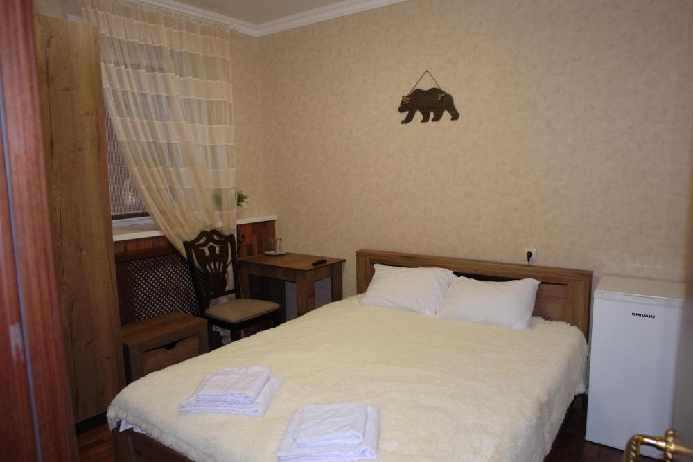 В номере:двуспальная кровать, полутороспальная кровать, стол, стулья, шкаф-купе, вешалки для одежды, вентилятор, центральное отопление, тумбочка, индивидуальные розетки, мягкая гипоаллергенная подушка из «лебяжьего» пуха, теплое одеяло из «лебяжьего» пуха, натуральное постельное белье из 100% хлопка, москитная сетка, посуда, холодильник, интернет, ЖК-телевизор с 20 цифровыми каналами. В ванной:туалет, раковина, душ-поддон, средства личной гигиены (гель для душа-шампунь, жидкое мыло, туалетная бумага (делюкс)), зеркало, набор из трех полотенец (лицевое, банное, ножное), корзина для мусора. Удобства (фен, чайник, гладильные принадлежности) по требованию, кулер, микроволновая печь на этаже.