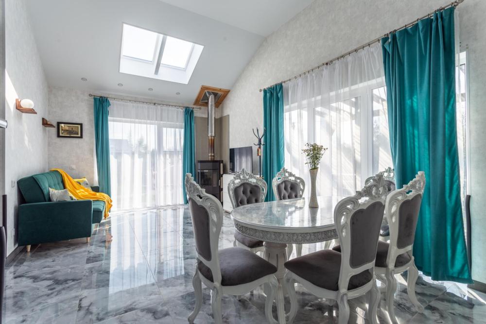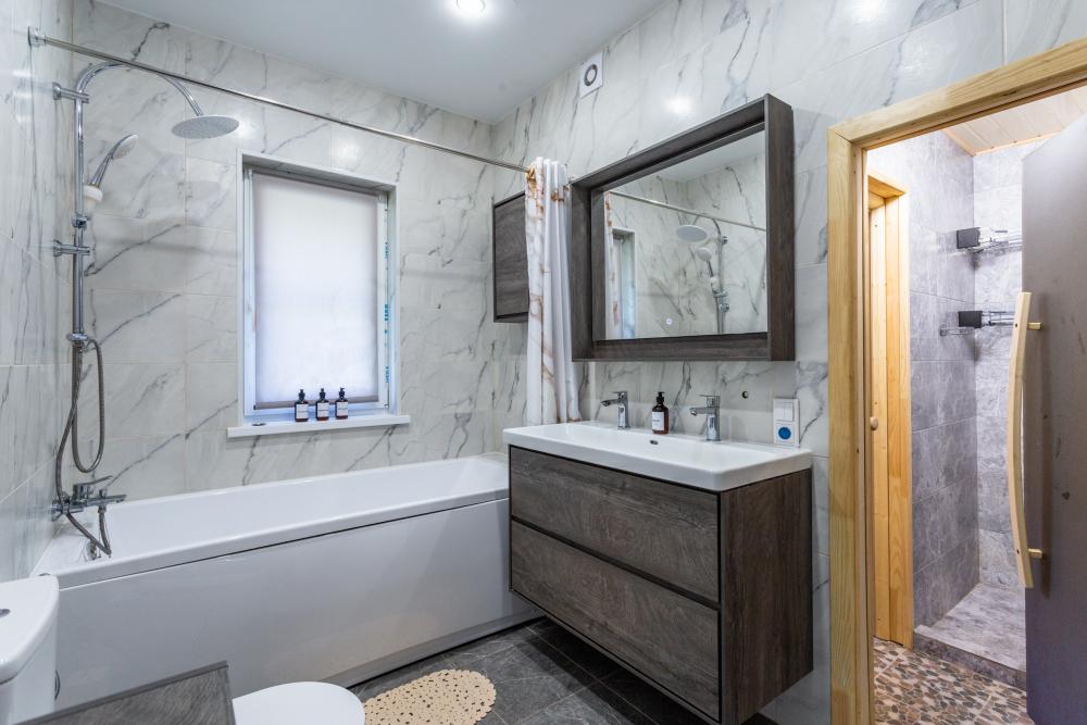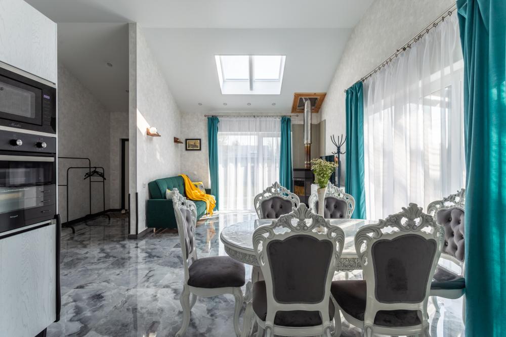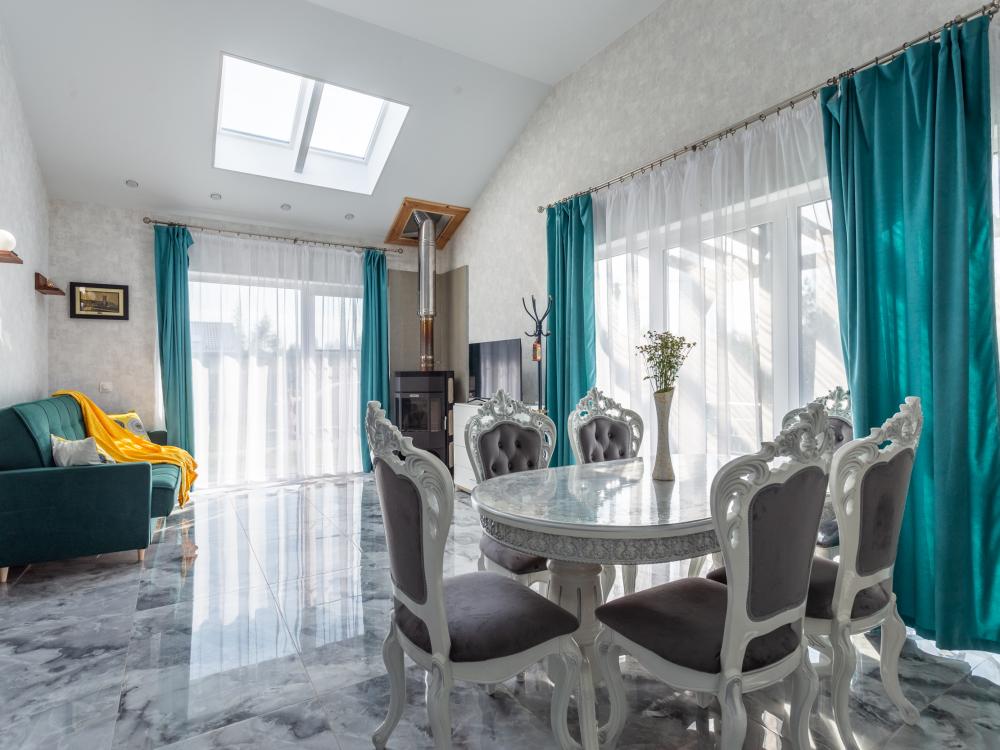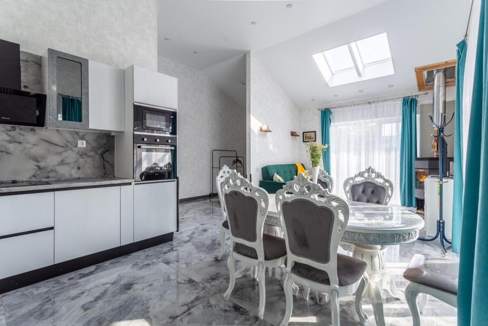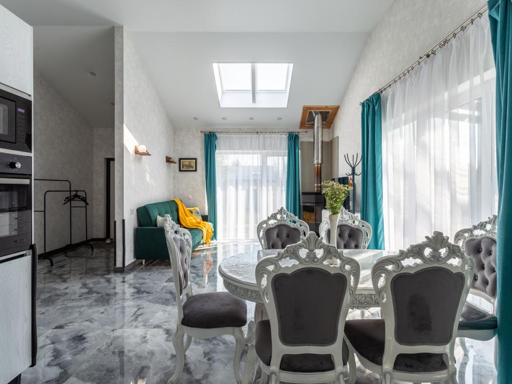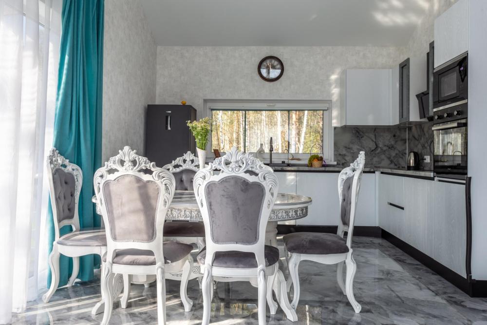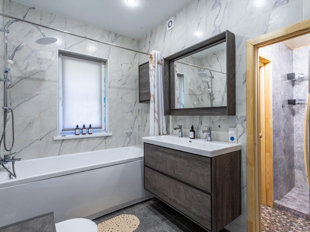 Уютный загородный дом с баней. В доме есть всё необходимое для комфортного отдыха: 3 двуспальные кровати, диван, ТВ, кухня оснащённая всем необходимым (холодильник, посудомоечная машина, плита, духовой шкаф, посуда и приборы), стиральная машина, фен, полотенца и все принадлежности для душа, большой выбор игр для любой компании.