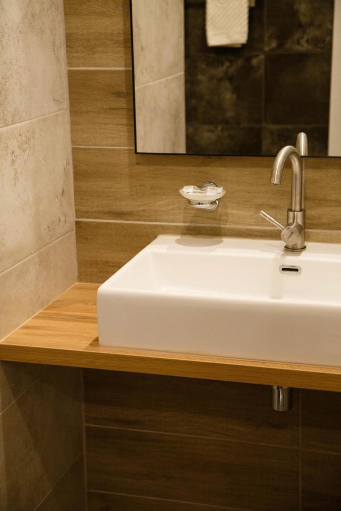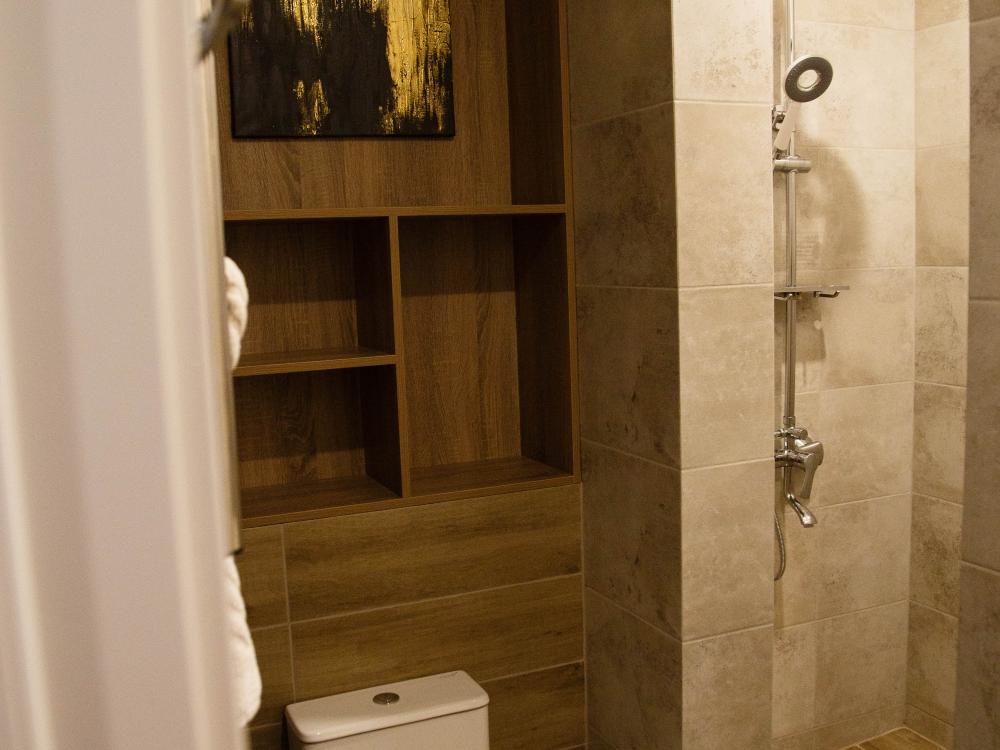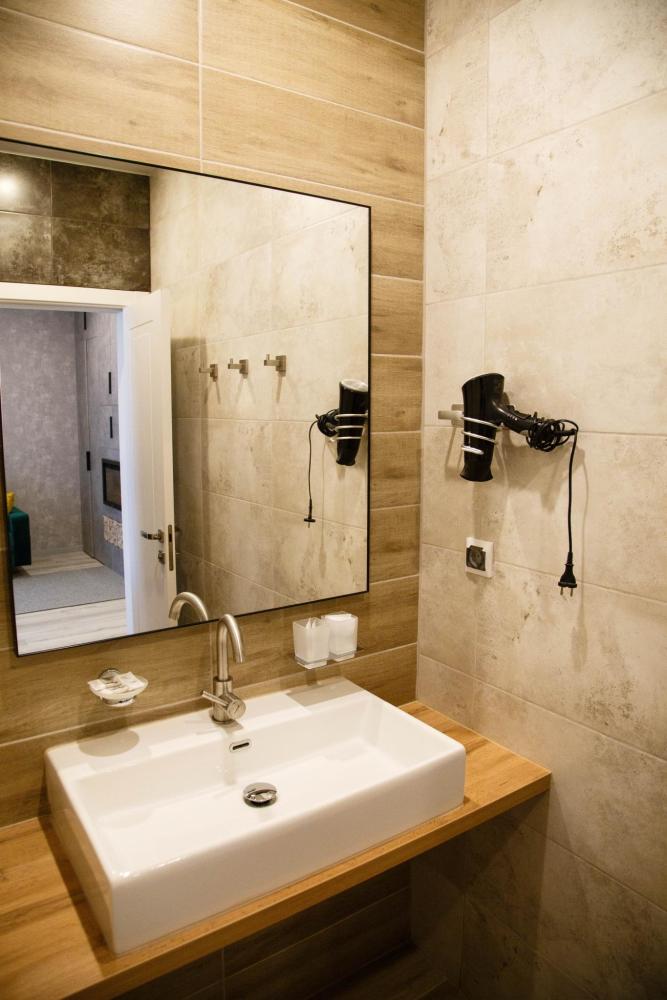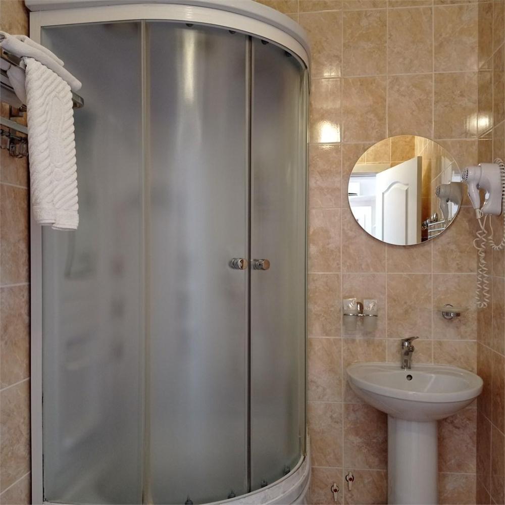 Красивый современный интерьер номера (S =20 кв.м.) категории "Бизнес". Это один из последних номеров со свежим ремонтом. Максимальная вместимость: 2+1 реб. Номер расположен на 1 этаже, оснащен кондиционером, ТВ, холодильником. Удобная широкая 2-х спальная кровать, которая трансформируется в две односпальные, все матрасы ортопедические. В номере очень просторный полный санузел с душем. В наличии фен, средства личной гигиены и комплект махровых полотенец.
