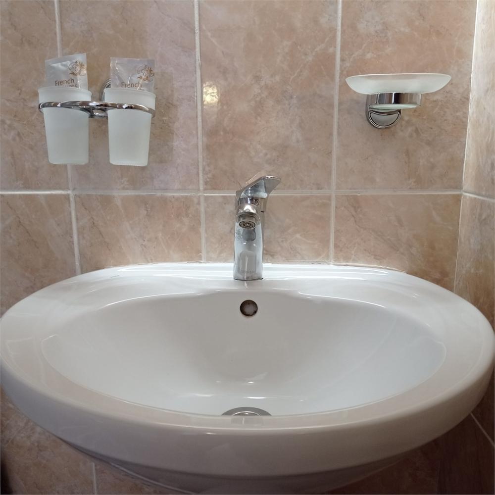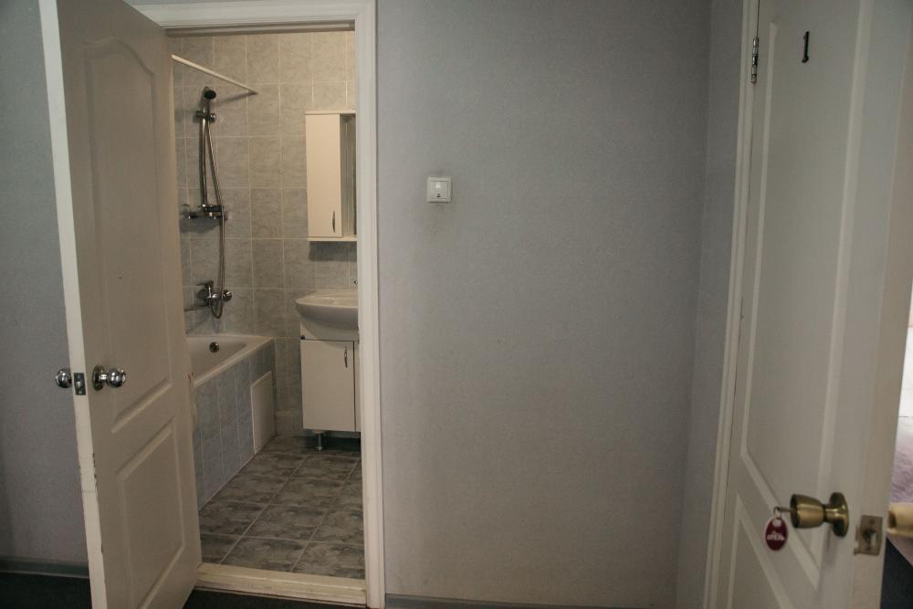 Одноместный номер с одной жилой комнатой, прихожей и полным санузлом на первом этаже с окнами на северо-запад. Интерьер в классических бежевых тонах, линолиум, ковер. В номере: одна 1,5 сп. кровать (120*190) с встроенной мебелью, столик раскладной, телевизор, прихожая вешалка с зеркалом, светильники в комнате включаются с пульта д/у. Санузел: ванна на 120 см, унитаз, умывальник, зеркало, фен, средства индивидуального пользования, полотенца махровые.