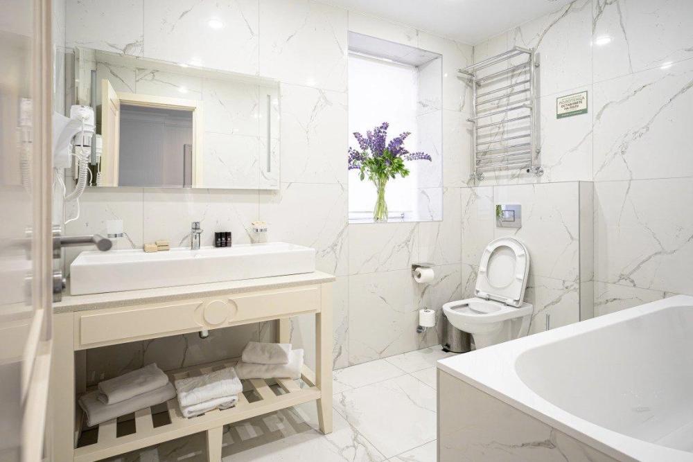 Просторный номер с современным дизайном. В номере находится одна большая кровать либо две раздельные; двухместный диван; большой телевизор; кондиционер; раскладывающийся диван; вместительный шкаф; туалетный столик. Номер оснащен холодильником, электрическим чайником и набором посуды. В большом сан.узле душевая кабина, ванные принадлежности.