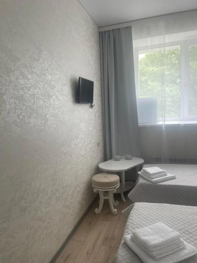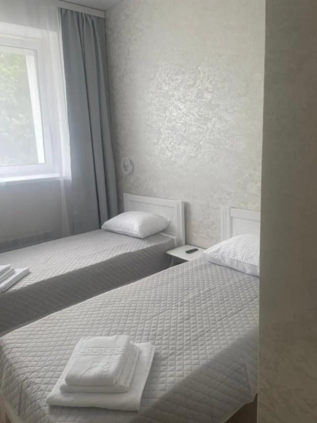В номере: две односпальные кровати, стол, стулья, шкаф, тумбочка, телевизор, Wi-Fi, электрочайник, холодильник.