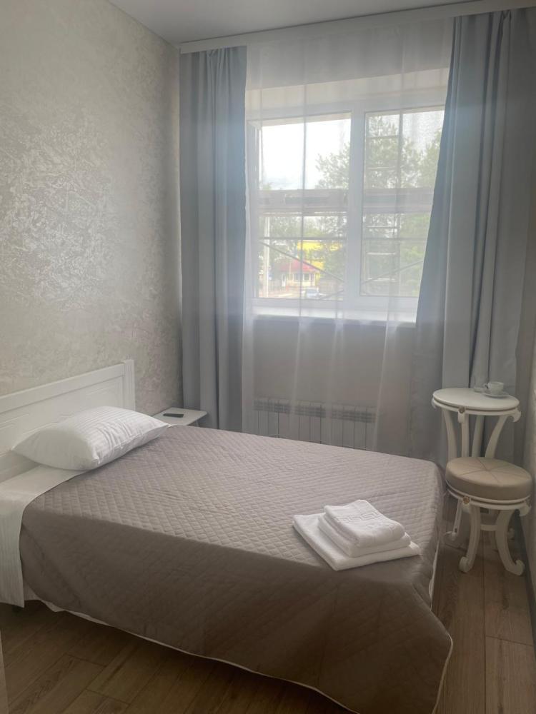В номере: односпальная кровать, стол, стулья, шкаф, тумбочка, телевизор, Wi-Fi, электрочайник, холодильник.