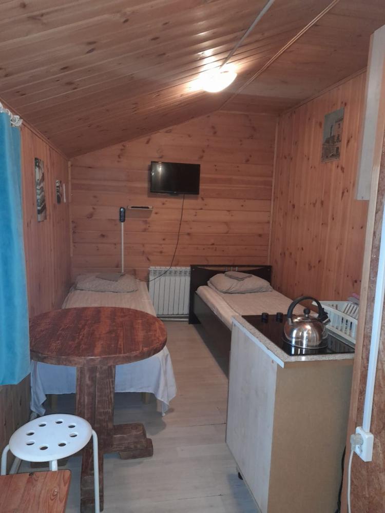 Новый двухместный эконом апарт-коттедж с 2 односпальными кроватями. Имеется кухня с необходимой посудой, холодильником и плитой, душ и туалет. Также есть общий мангал на улице.