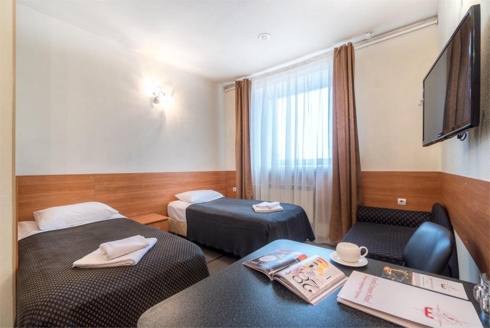 В номере Эконом установлены две односпальные кровати или одна двуспальная, есть возможность размещения на доп.месте - диван односпальный. Во всех номерах: отдельная ванная комната с душем, шкаф для одежды, стол и два стула, LED телевизор, открытый доступ Wi-Fi.