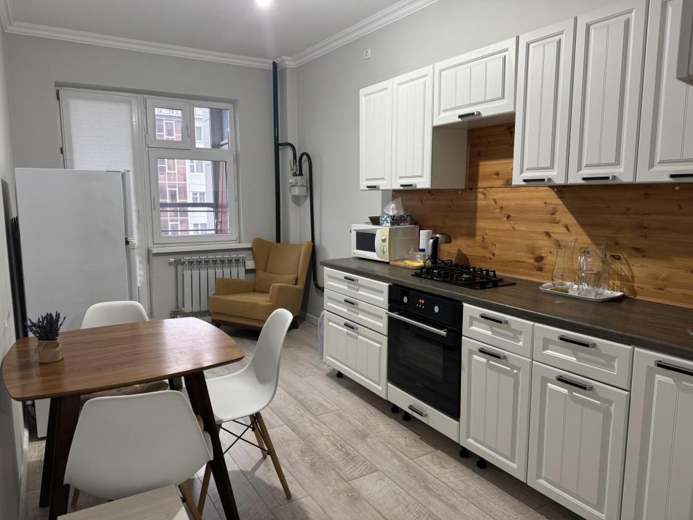 По-домашнему уютная, чистая, комфортная квартира с красивым , современным ремонтом в районе ТЦ Апельсин ждёт своих гостей! Комфортное проживание до 4 человек, без доплат. Бесконтактное заселение 24/7- получайте доступ в любое время, даже ночью! Безопасное онлайн бронирование с возможностью отмены. Менеджер всегда на связи - помогаем на всех этапах проживания. Очень удобное расположение Рядом ТЦ Апельсин, ТДЦ на Дзержинского, продуктовые магазины, аптеки, фитнес центр "Фит-Студио". Рядом Сбербанк, ВТБ, АТБ, АЭБ, Департамент жилищных отношений, Японский дом, ресторан "Мацури", кафе Тревелерс. В пешей доступности ТЦ «Рио», Акварель-центр, Улуру Молл. Транспортная доступность 5 минут на авто до Центра города, 10 минут до Парка отдыха, до Площади Победы, 10 минут до аэропорта. Остановка общественного транспорта Банковская Информация о квартире: Двуспальная кровать ортопедическим матрацем Комфортный мягкий диван Смарт ТВ Интернет WiFi. Оснащена всей необходимой техникой: Телевизор, Холодильник, Газовая плита, Духовка, Чайник, Микроволновка, Стиральная машина. На кухне небольшой набор продуктов первой необходимости. Большой встроенный шкаф, утюг, гладильная доска. В ванной: фен, ванна, полотенца. Условия размещения: Заезд после 14:00, выезд до 12:00. Возможен более ранний заезд и выезд по предварительной договоренности, при условии, что нет броней до или после дня заезда. Бронируете в день заезда? Принимаем заявки с 8:00 до 22:30 - позже указанного времени заселение не производится. Залог 2000 ₽ (возвращаем в день выезда при выполнении условий размещения) При необходимости предоставляем отчетные документы, необходимы паспортные данные. Курение в квартире категорически запрещено , в том числе и электронных сигарет, за нарушение штраф 2000₽. Вечеринки и мероприятия запрещены! Размещение с питомцами запрещено! Наша компания не является отелем, поэтому мы информируем вас, что белье сушится непосредственно в квартире. Бронируя квартиру, вы подтверждаете отсутствие претензий по этому вопросу.