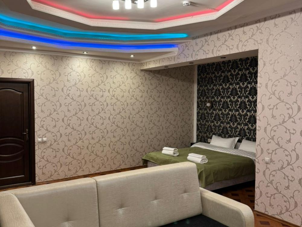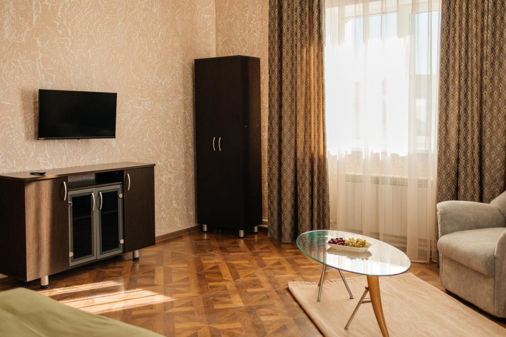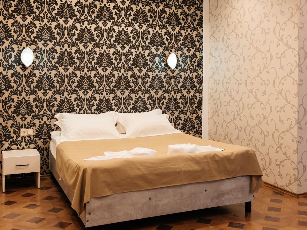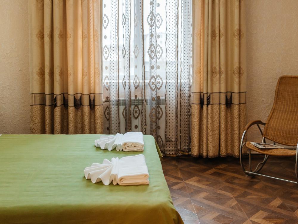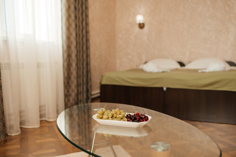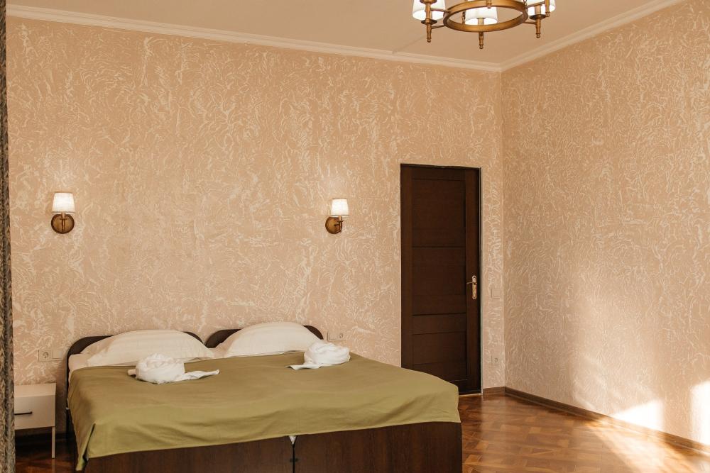 Двухместный однокомнатный номер люкс общей площадью 35 кв.м. В номере: двуспальная кровать 180х200см, 2 прикроватные тумбы, стол, стул, TV, Wi-Fi, ванная комната с душем.