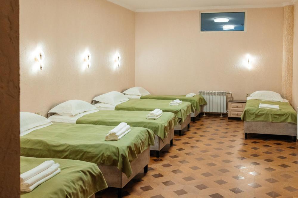 Кровать в шестиместном общем номере, площадью 40 кв.м. В номере: 6 односпальных кроватей 80х200см, 6 прикроватных тумб, TV, Wi-Fi, ванная комната с душем.