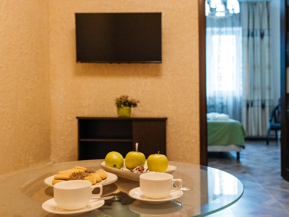 Двухместные апартаменты общей площадью 35 кв.м. В апартаментах: двуспальная кровать 180х200см, 2 прикроватные тумбы, стол, стул, TV, Wi-Fi, ванная комната с душем.
