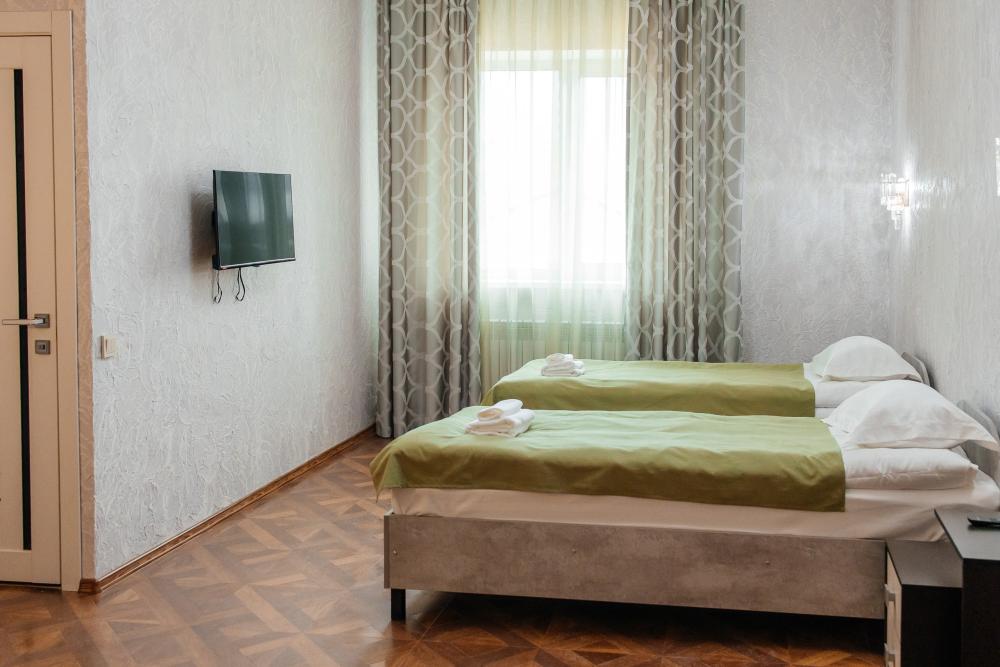 Двухместный номер стандарт общей площадью 25 кв.м. В номере: 2 полутороспальные кровати 120х200см, 2 прикроватные тумбы, стол, стул, TV, Wi-Fi, ванная комната с душем.