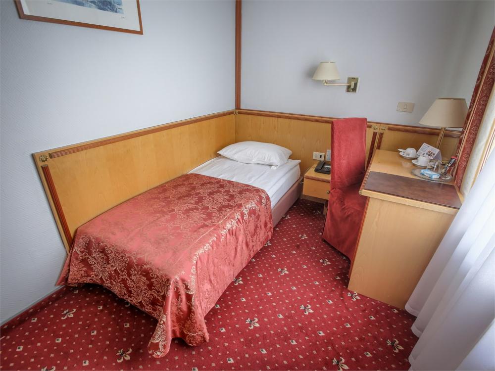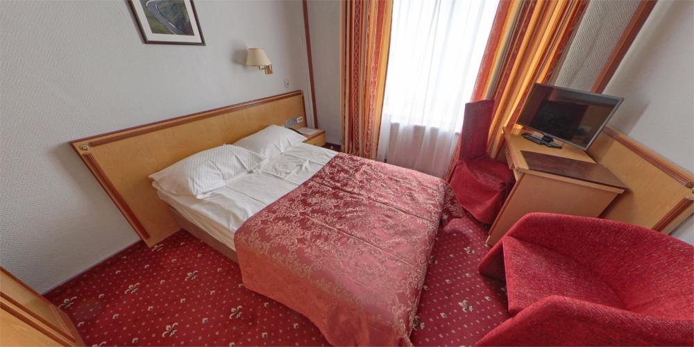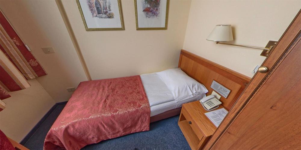 Однокомнатный номер эконом (спальня, прихожая, ванная комната). В номере: односпальная кровать, просторный гардероб, универсальный стол, телефон с междугородним и международным выходом, кабельное телевидение, кондиционер, мини-бар, фен, ванная комната.