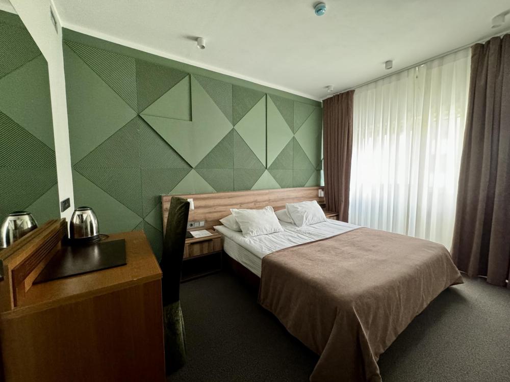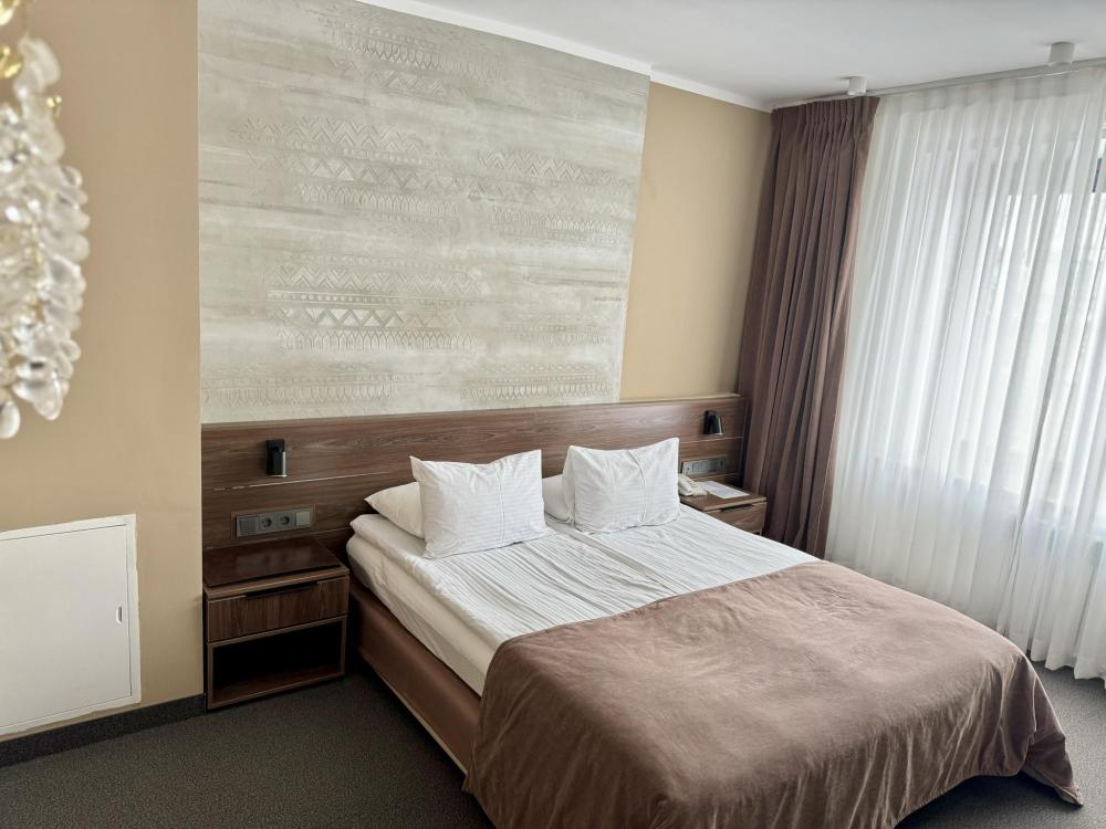 Двухместный однокомнатный номер стандарт с двумя односпальными кроватями (спальня, прихожая, ванная комната). В номере: две односпальные кровати (по желанию сдвигаются), мягкая мебель, просторный гардероб, универсальный стол, телефон с междугородним и международным выходом, кондиционер, кабельное телевидение, мини-бар, фен, ванная комната.