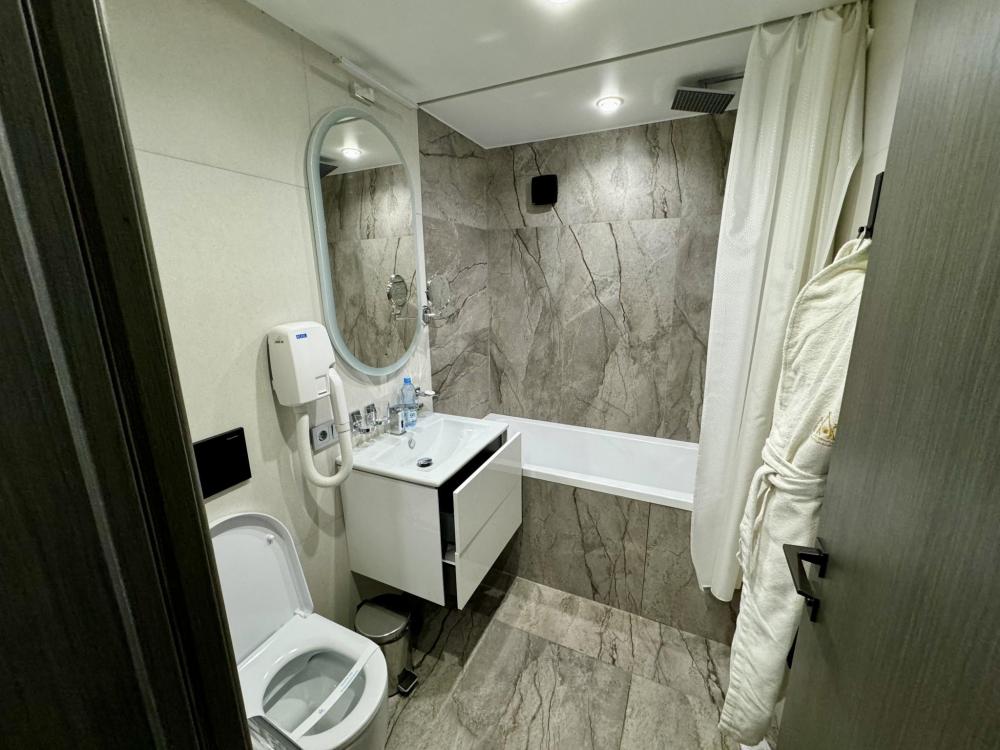 Двухкомнатный номер Сюит (гостиная, спальня, ванная комната, гостевой туалет). В номере: двуспальная кровать или две односпальные кровати, мягкая мебель, просторный гардероб, универсальный стол, телефон с междугородним и международным выходом, кабельное телевидение, холодильник, мини-бар, фен, кондиционер, ванная комната.