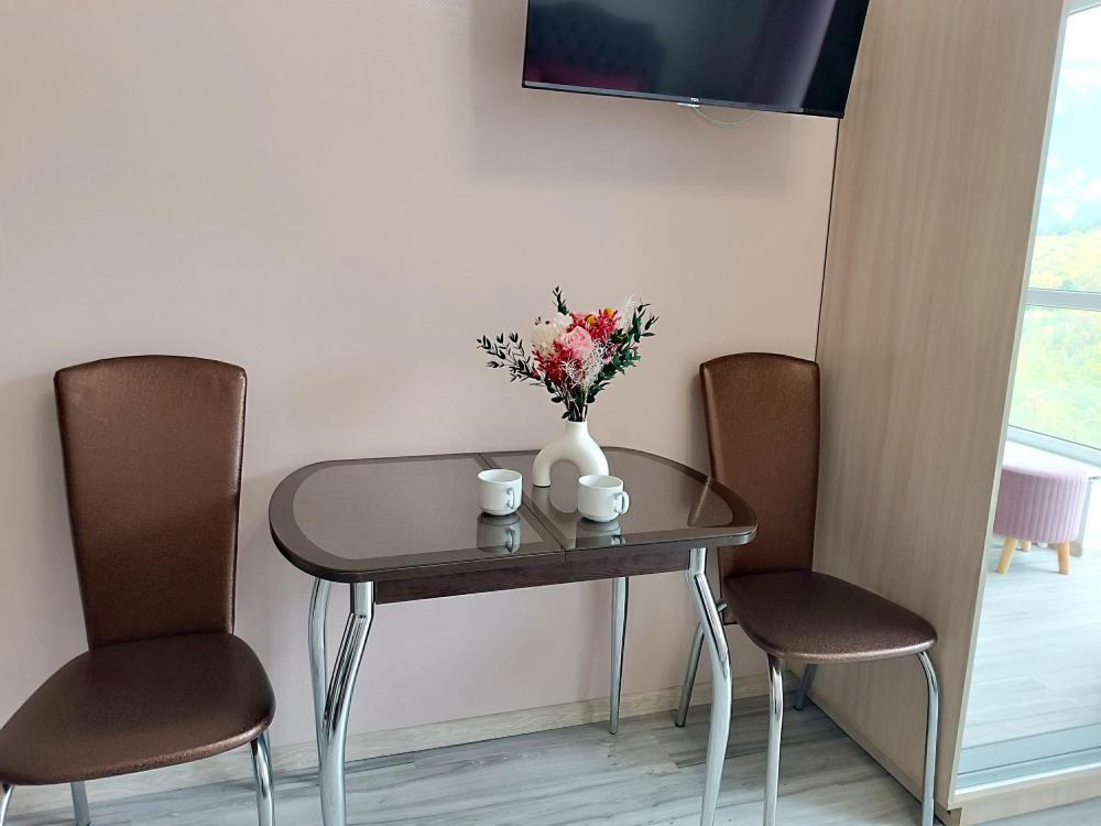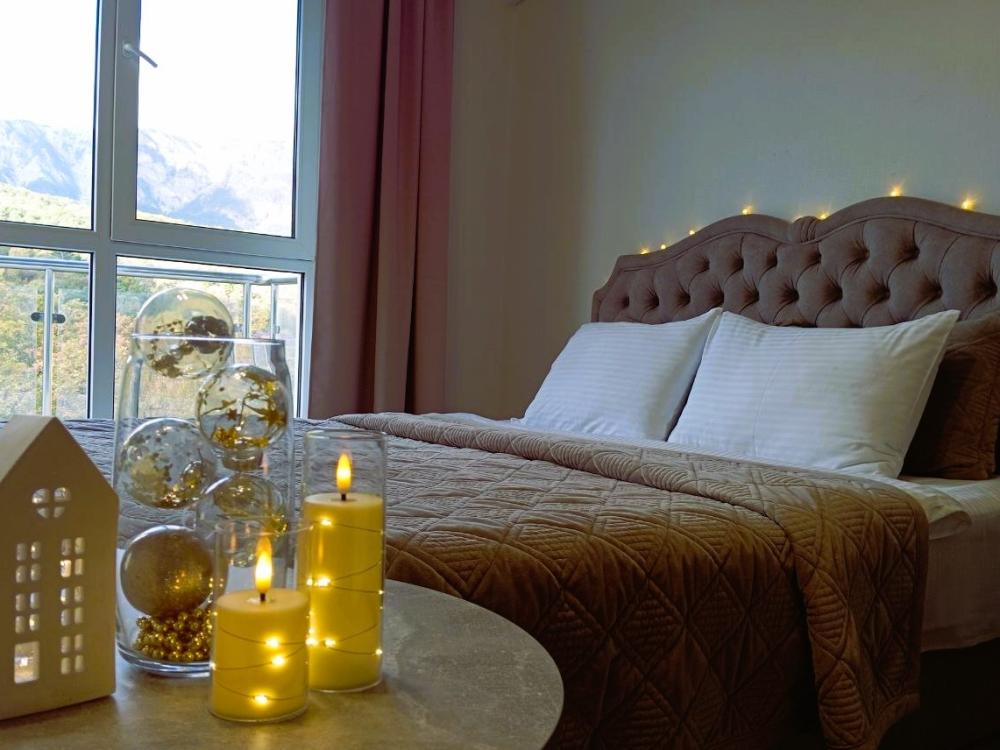 В квартире имеется все необходимое : скоростной Wi-Fi, качественный белоснежный текстиль (постельное белье и полотенца), кулер с чистой питьевой водой, набор гигиенических принадлежностей и тапочки, мощный кондиционер, затемняющие портьеры «блэкаут», удобная двуспальная кровать, оборудованная техникой и посудой кухня, ванная комната