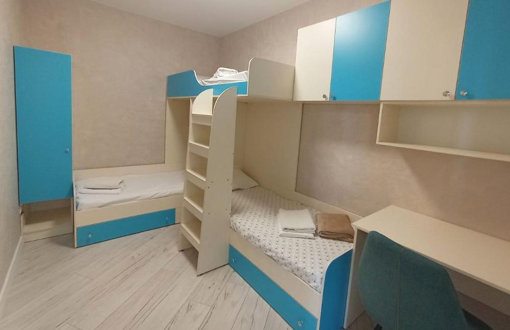 Просторная двухкомнатная квартира в современном ЖК «Горизонт Плаза». В квартире: 2 отдельные спальни (двуспальная кровать + 3 односпальных места), просторная гостиная с обеденной зоной, полностью оборудованная кухня с посудомоечной машиной, 2 мощных кондиционера, высокоскоростной Wi-Fi, качественный текстиль и гигиенические наборы